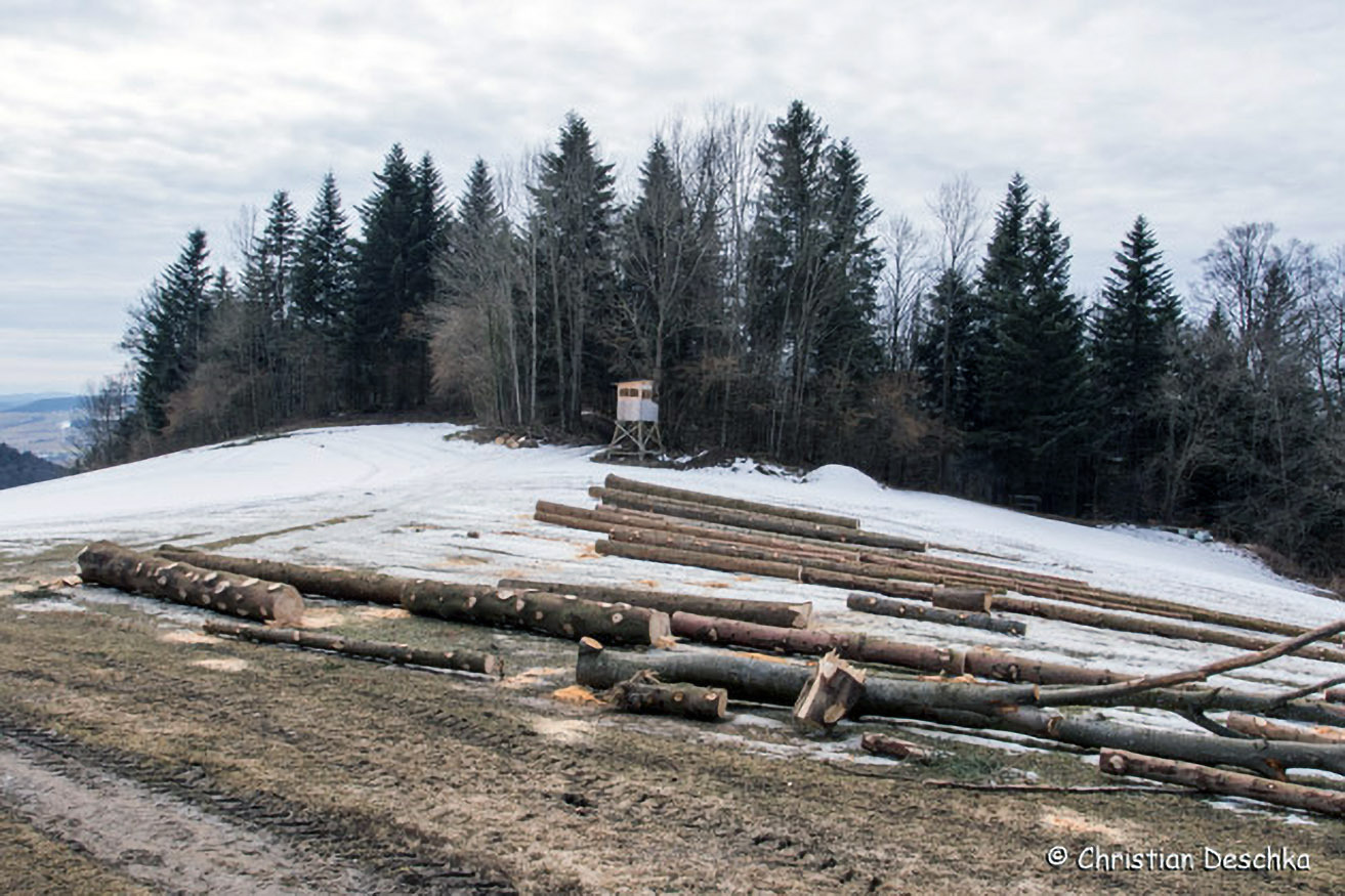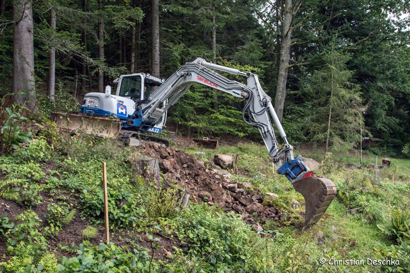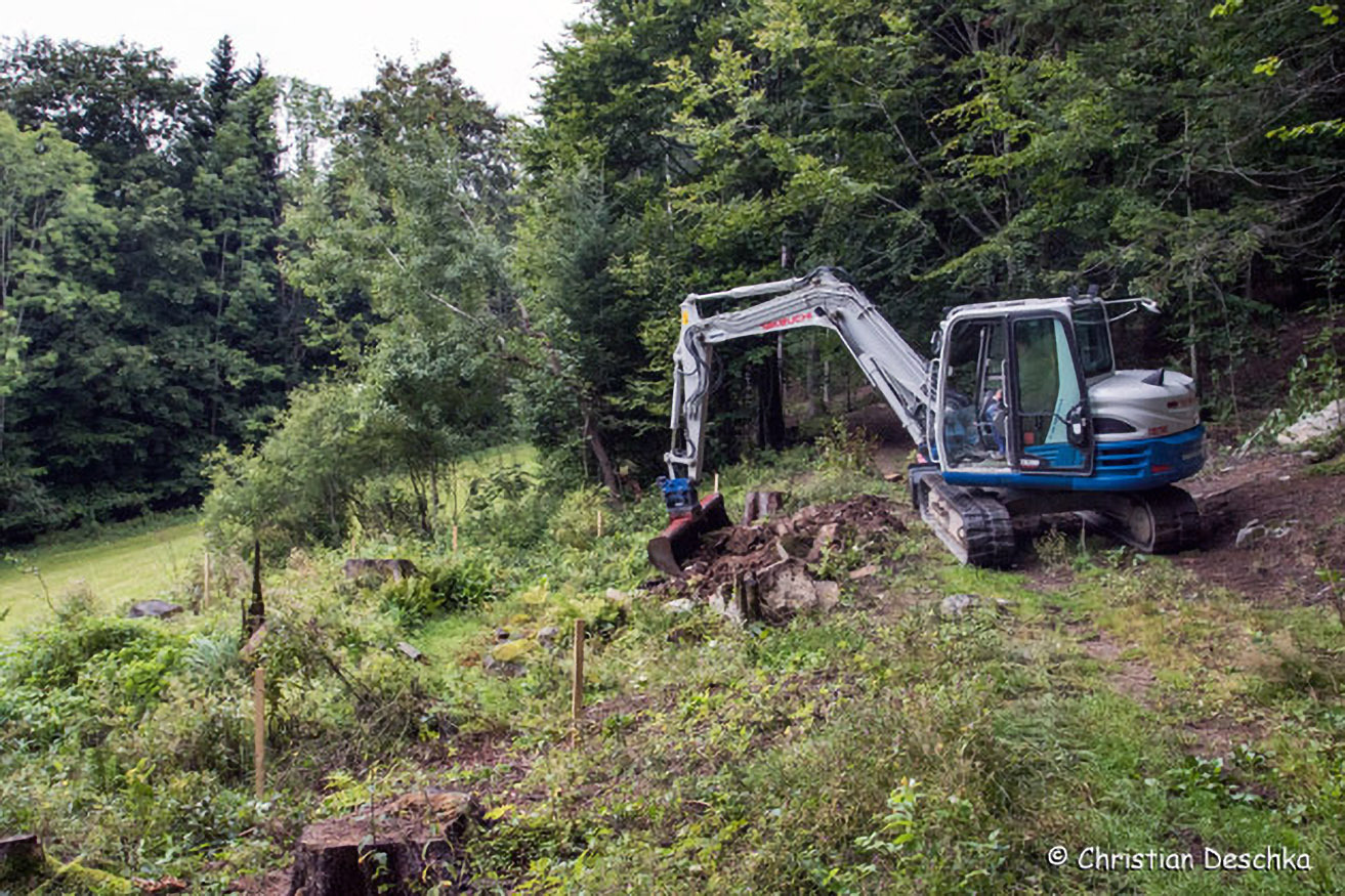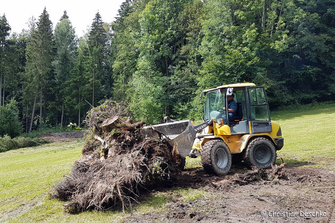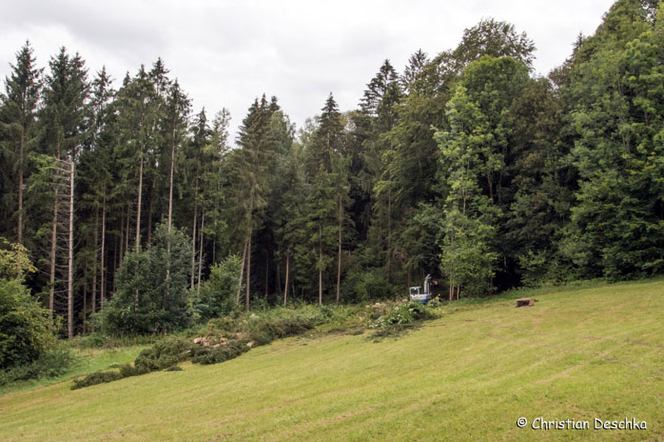 Diese wurden mit einem Lader an den gegenüberliegenden Waldrand verfrachtet.
