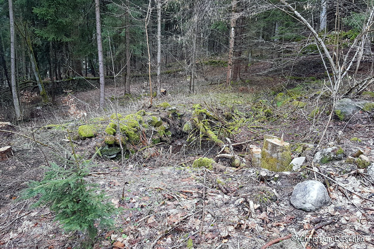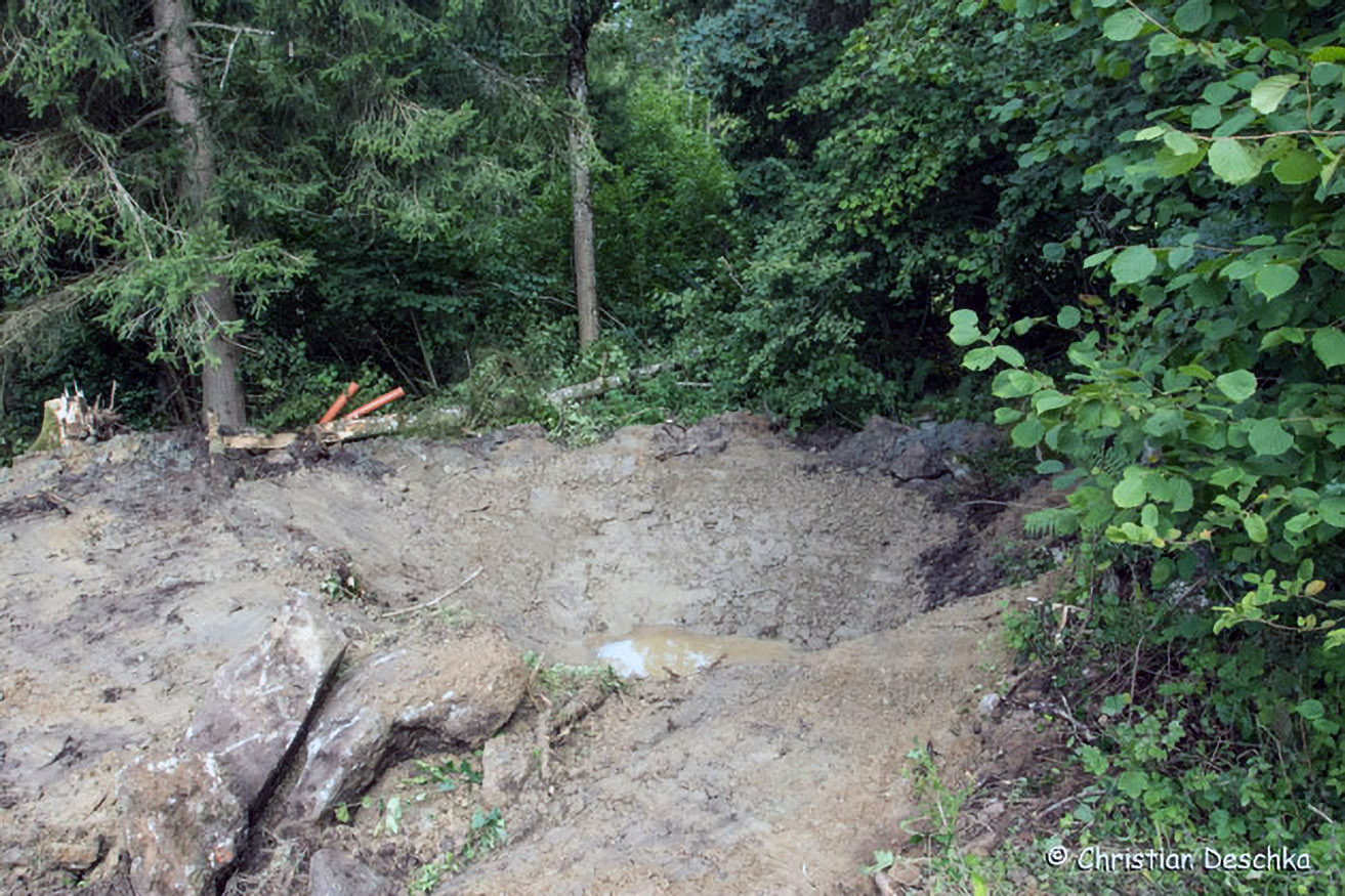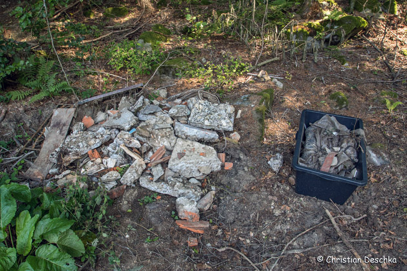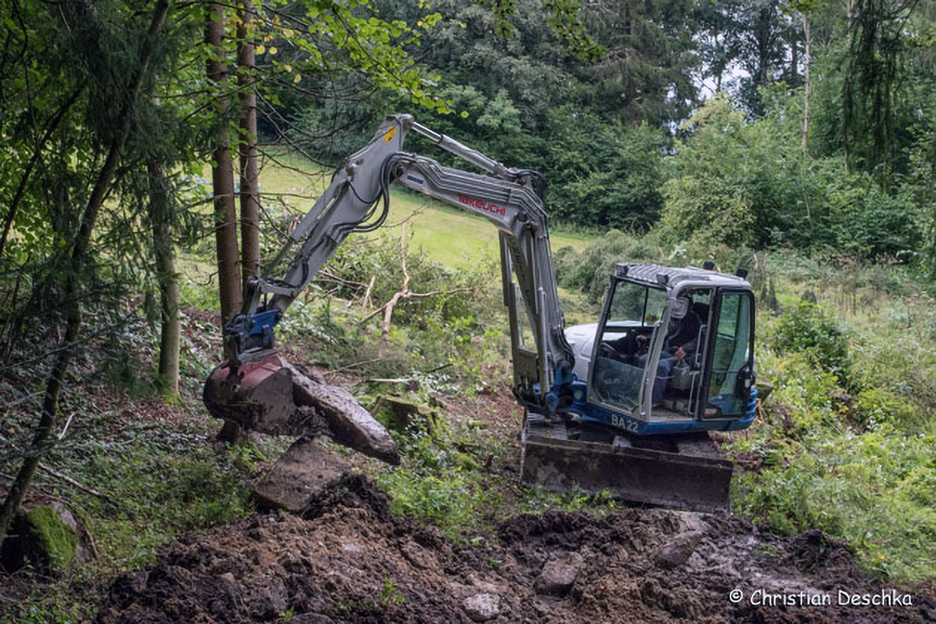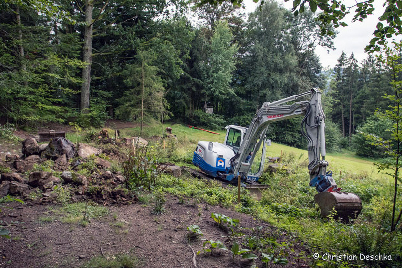 Auch hier waren noch die verfallenen Reste des aus Natursteinen gemauerten Vorläuferteiches erkennbar.