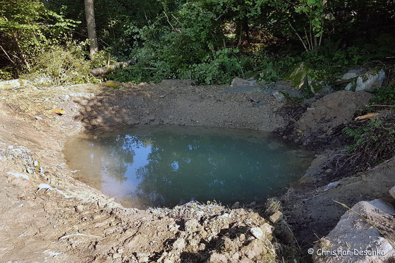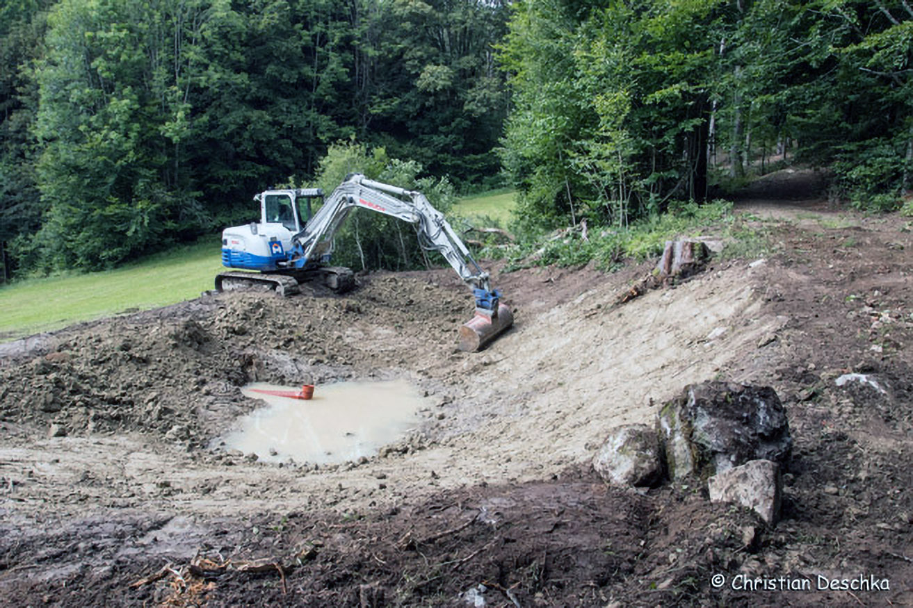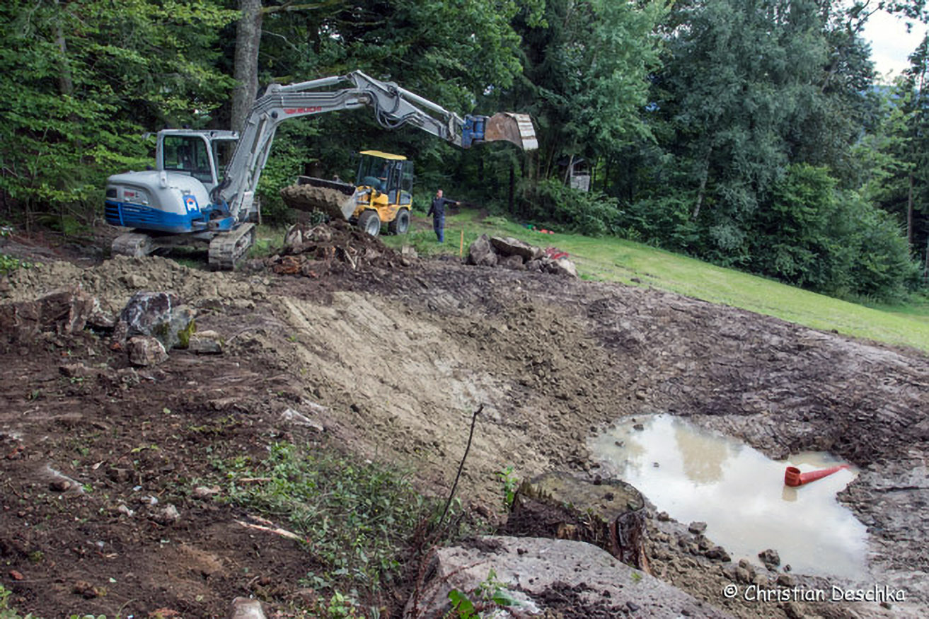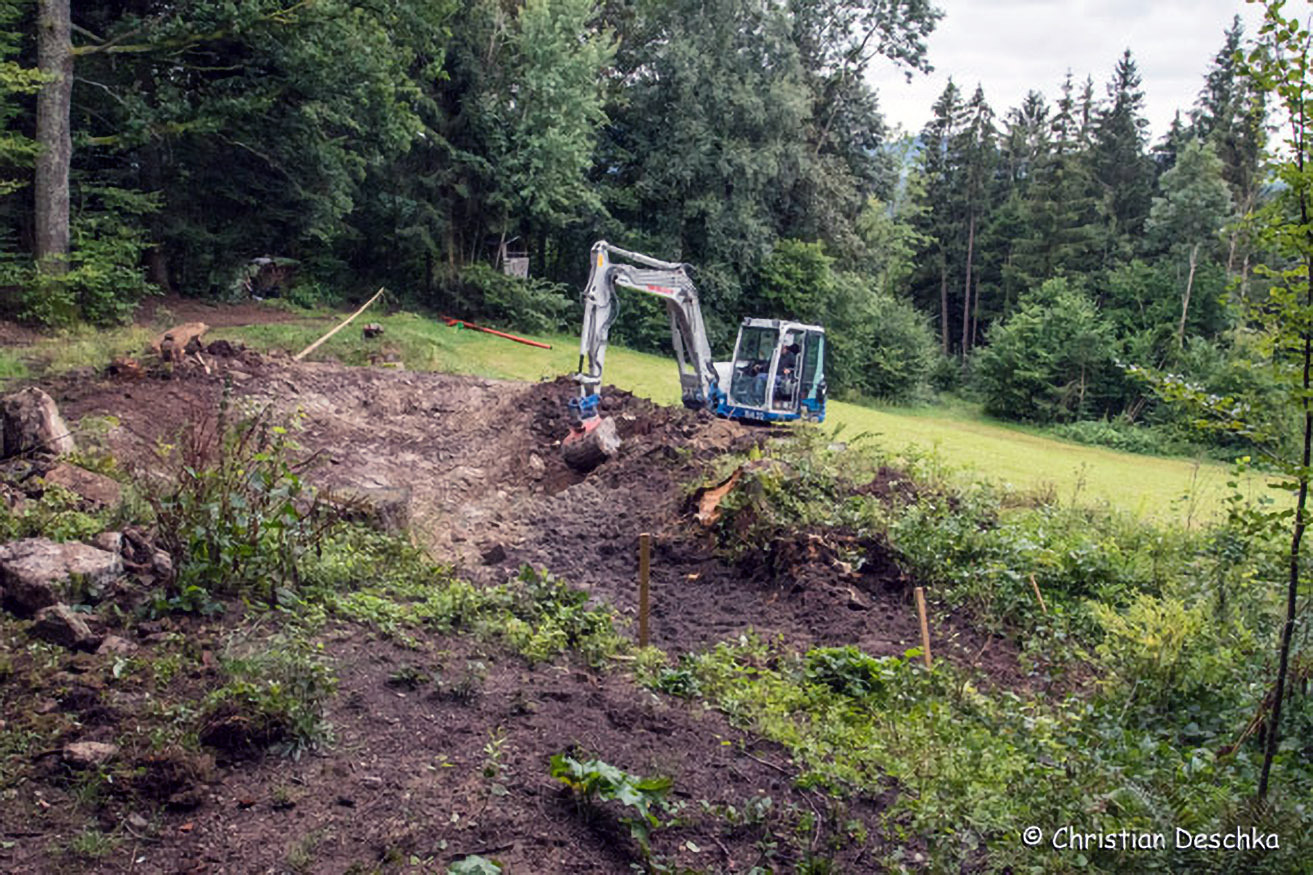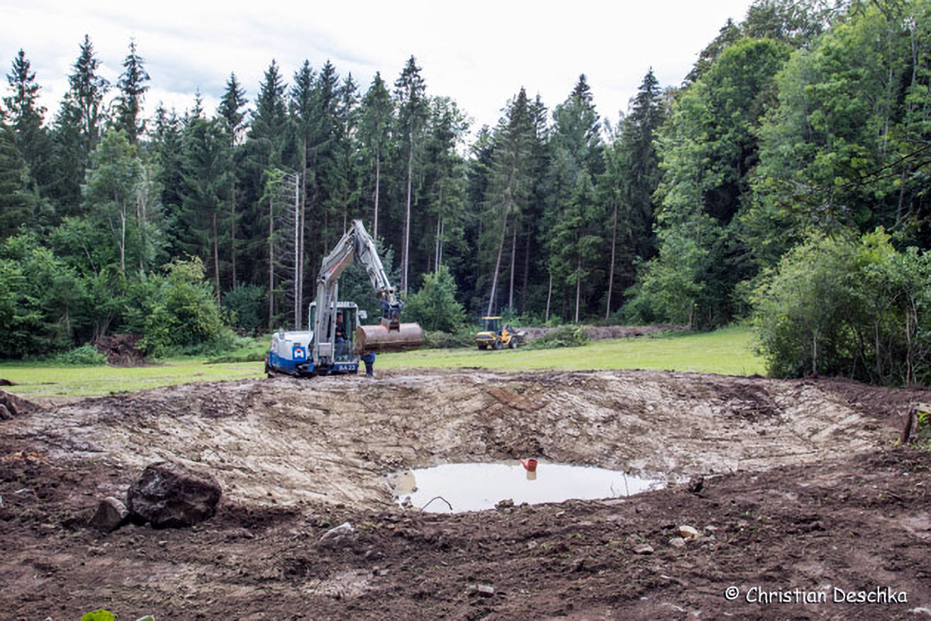Anschließend wurde Teich Nr. 2 am unteren Waldrand in Angriff genommen. Dieser weist die sicherste Wasserversorgung auf.