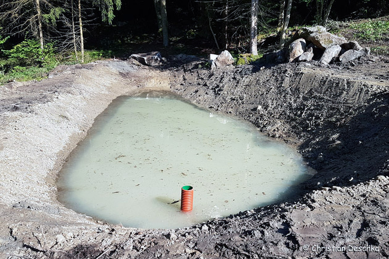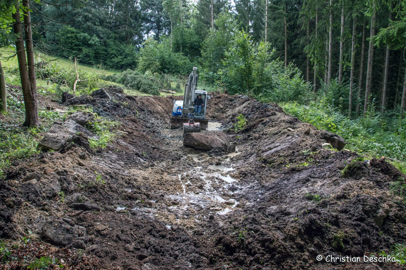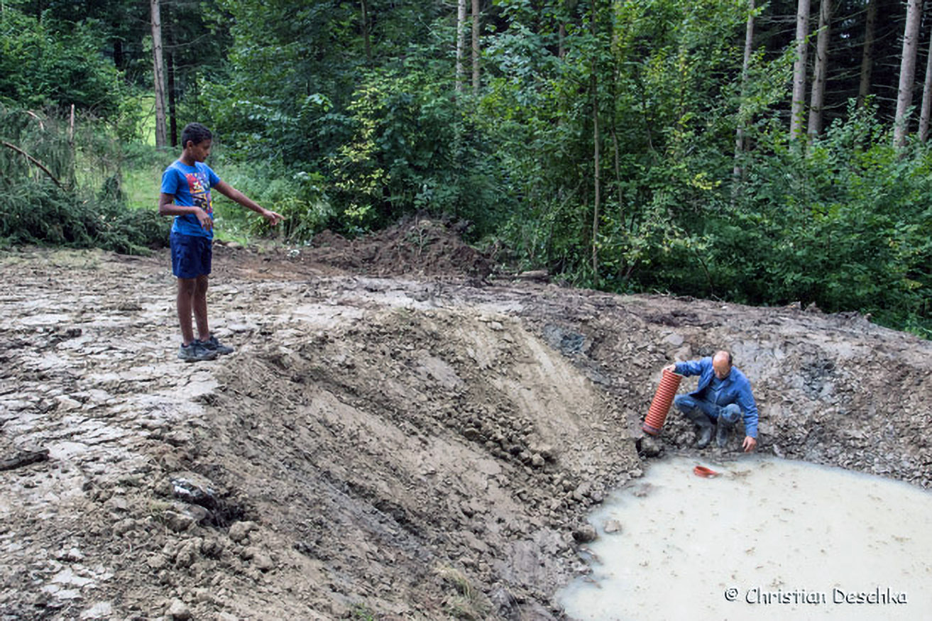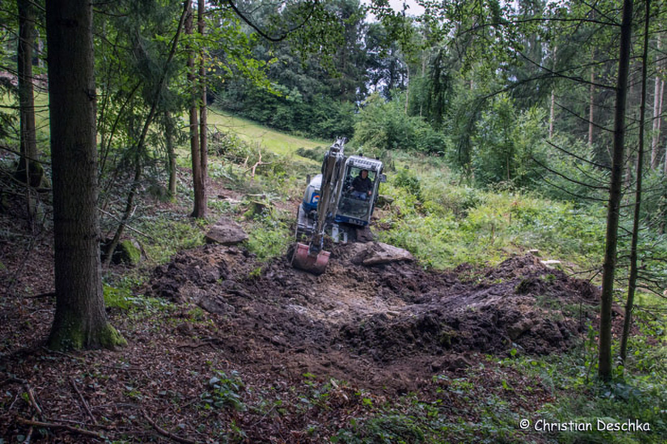 Anschließend wurde Teich Nr. 2 am unteren Waldrand in Angriff genommen. Dieser weist die sicherste Wasserversorgung auf.