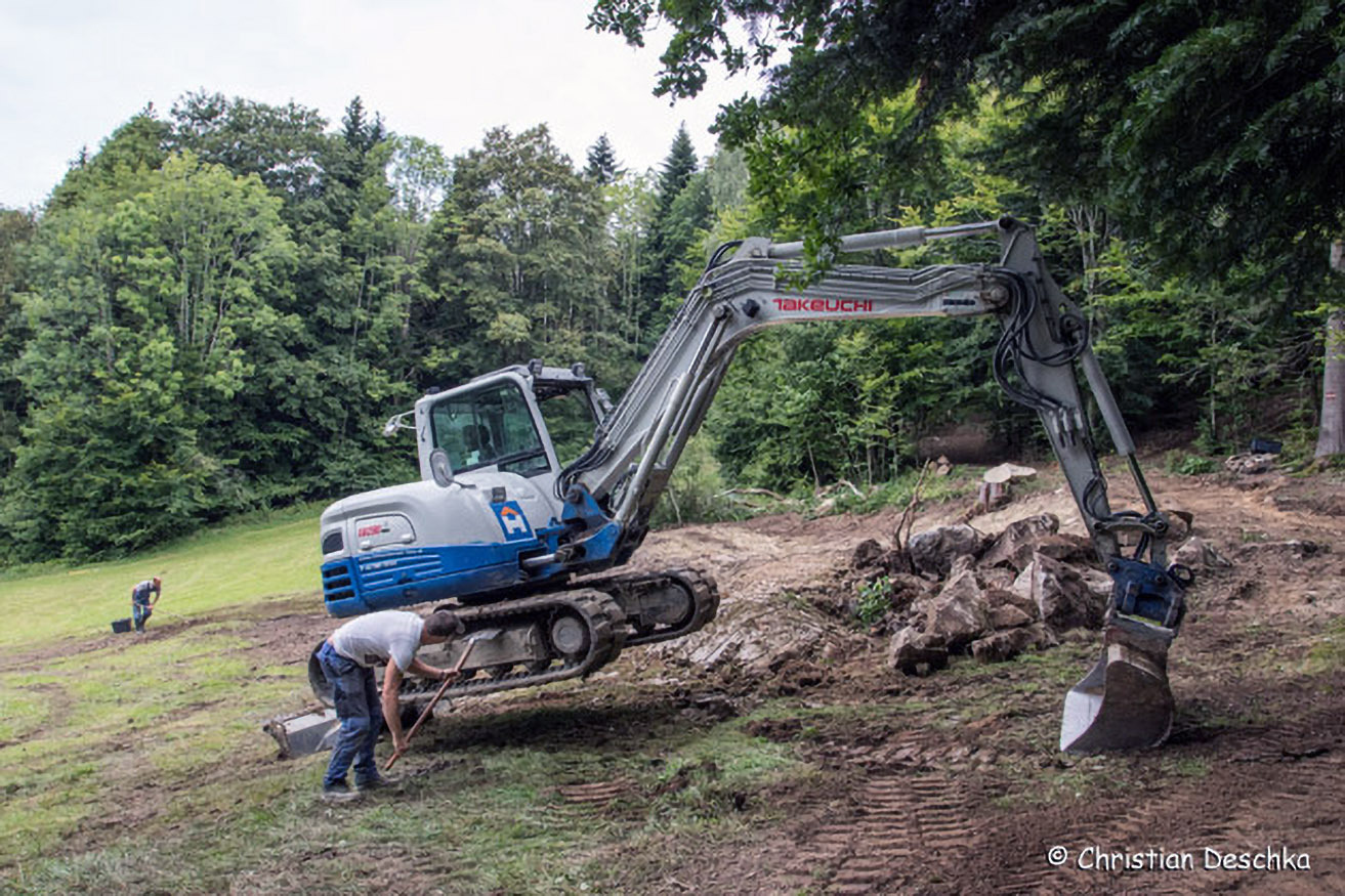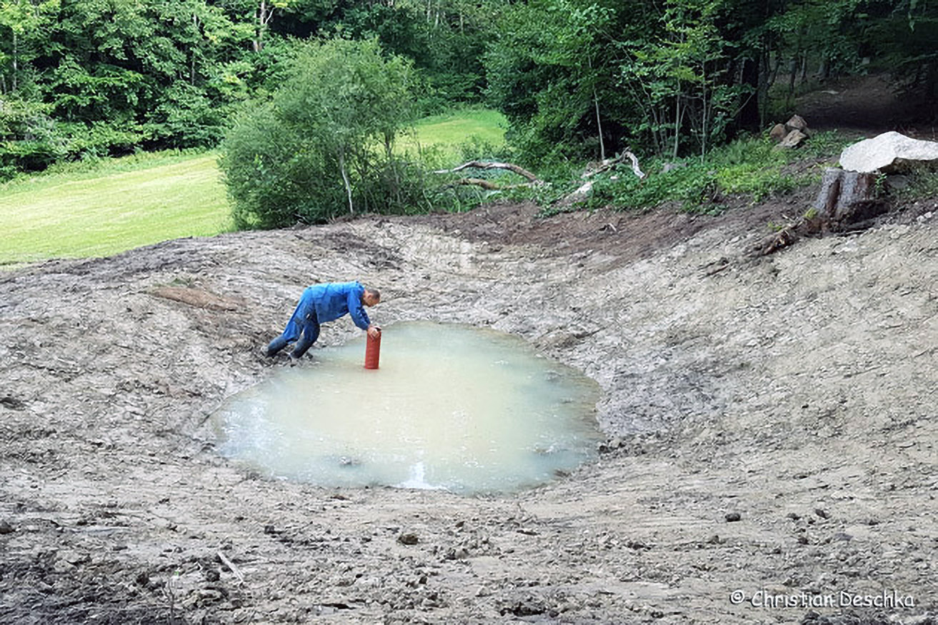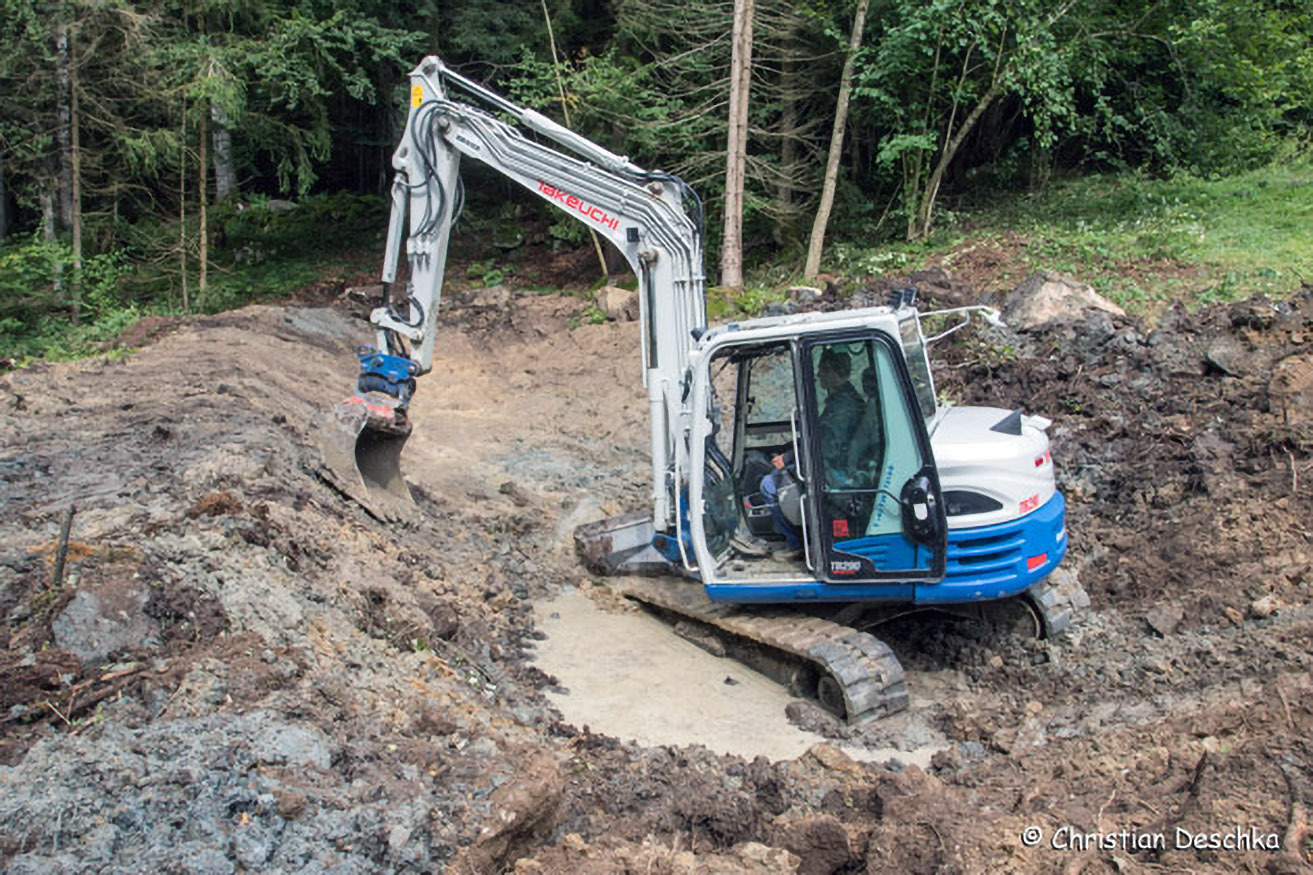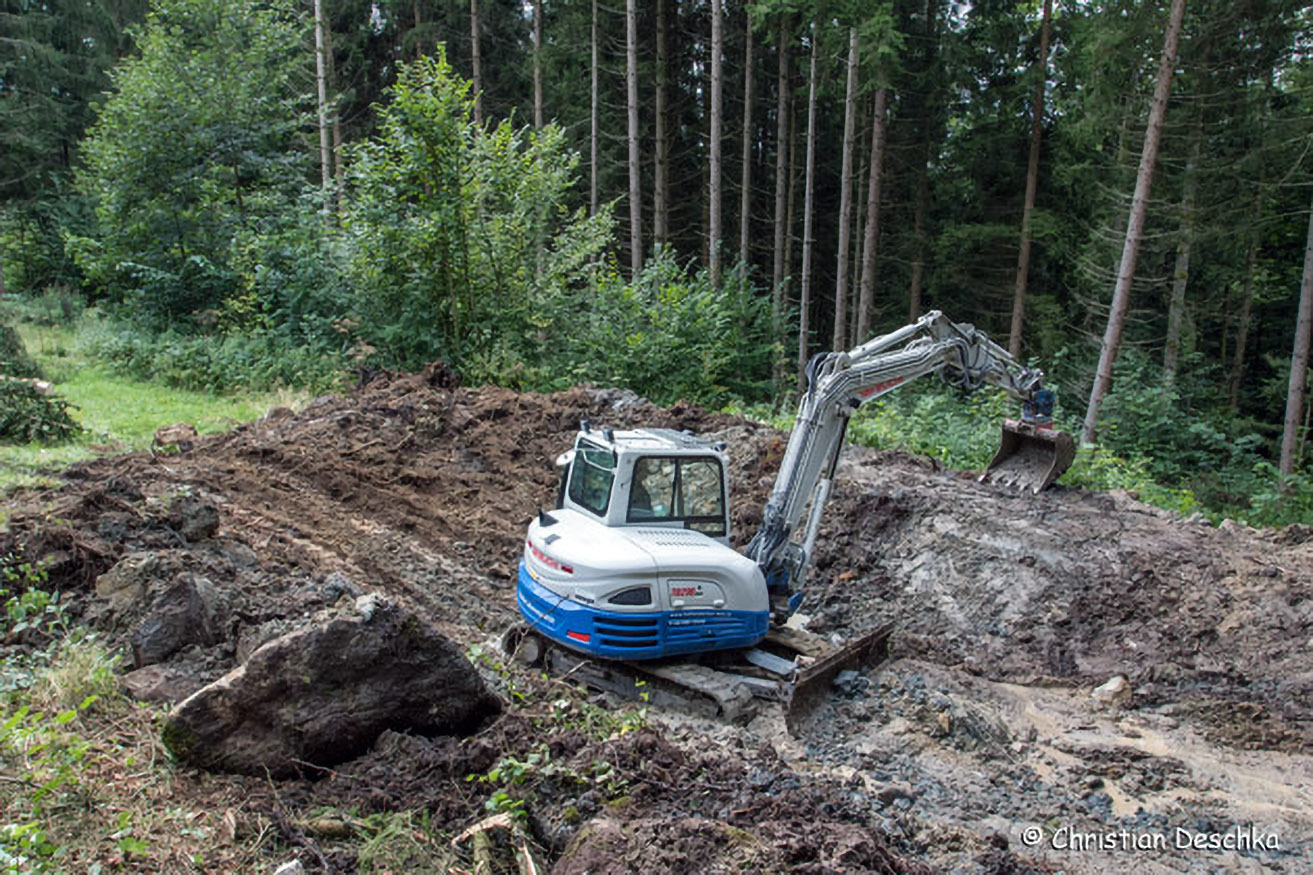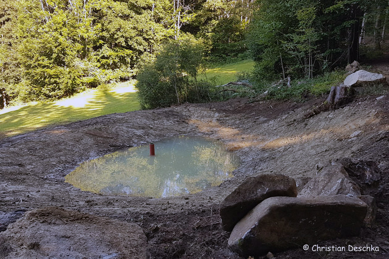 Anschließend wurde Teich Nr. 2 am unteren Waldrand in Angriff genommen. Dieser weist die sicherste Wasserversorgung auf.