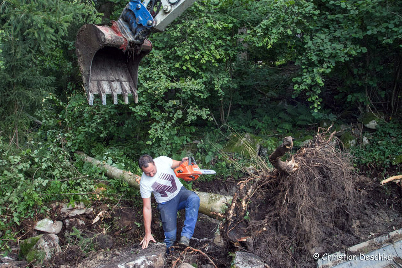 Um ausreichend Platz für den Bagger und den Teich zu schaffen, wurde eine Esche ...