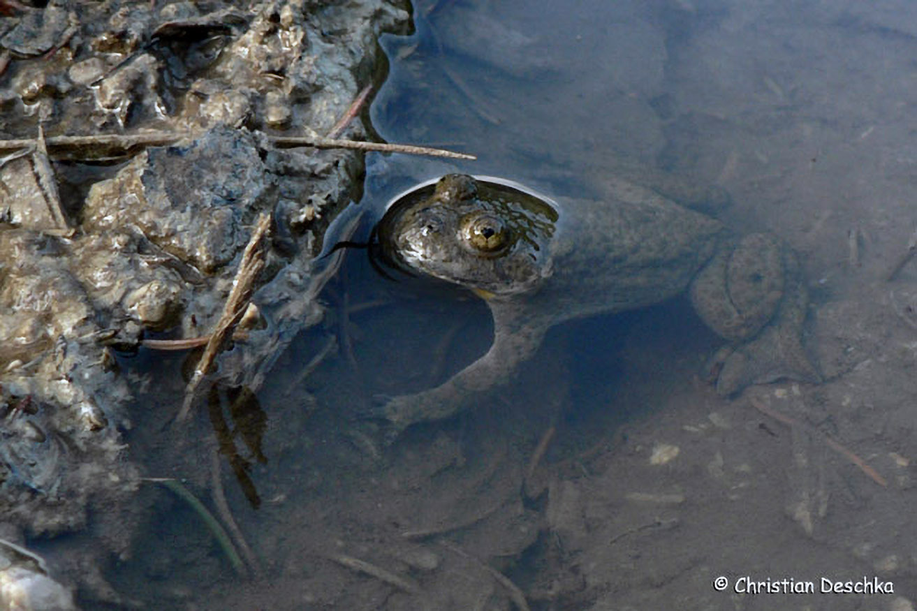 Die drei Teiche sind so konzipiert, dass sie gute Bedingungen für unsere seltensten Amphibienarten bieten. Dies sind Gelbbauchunke ...