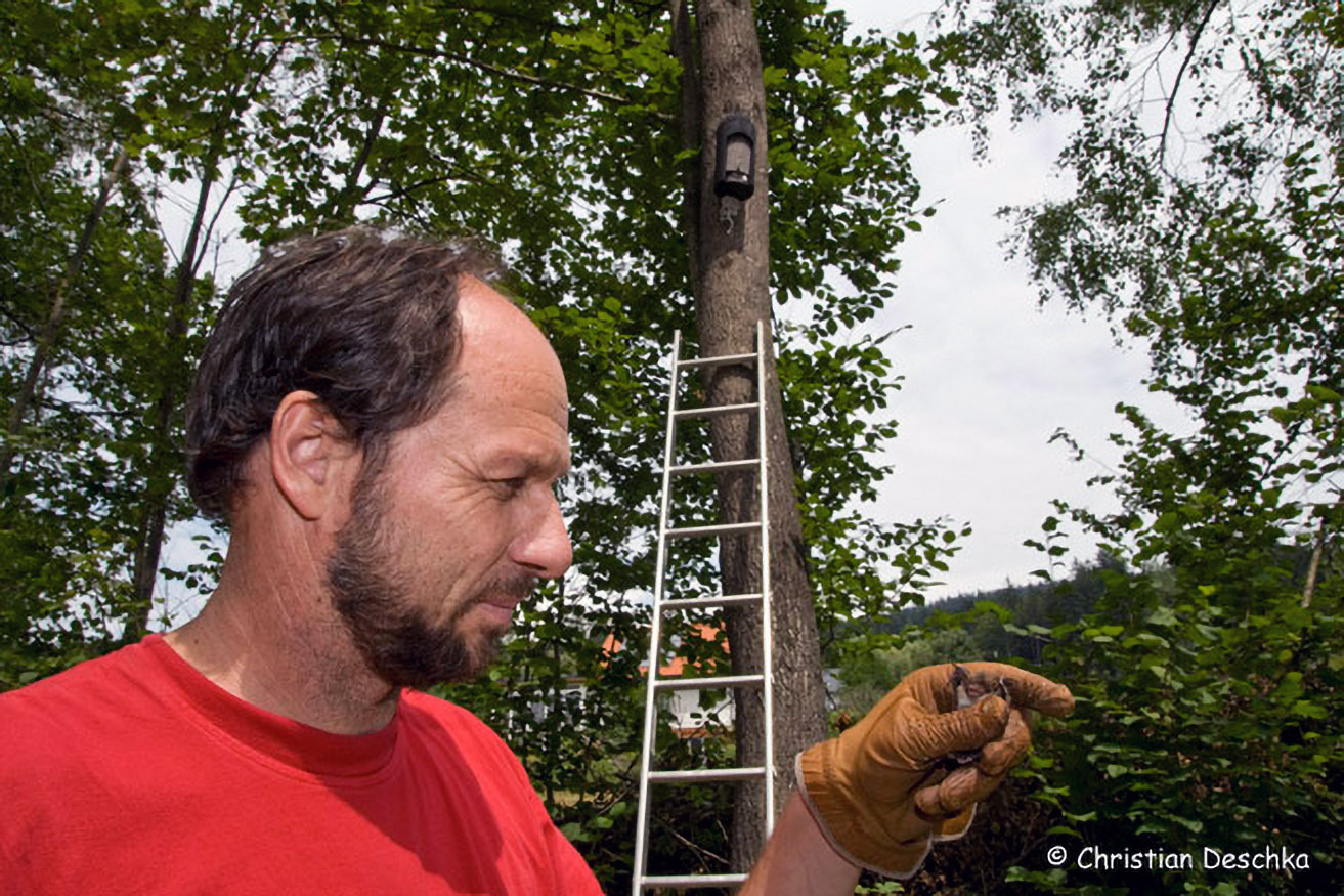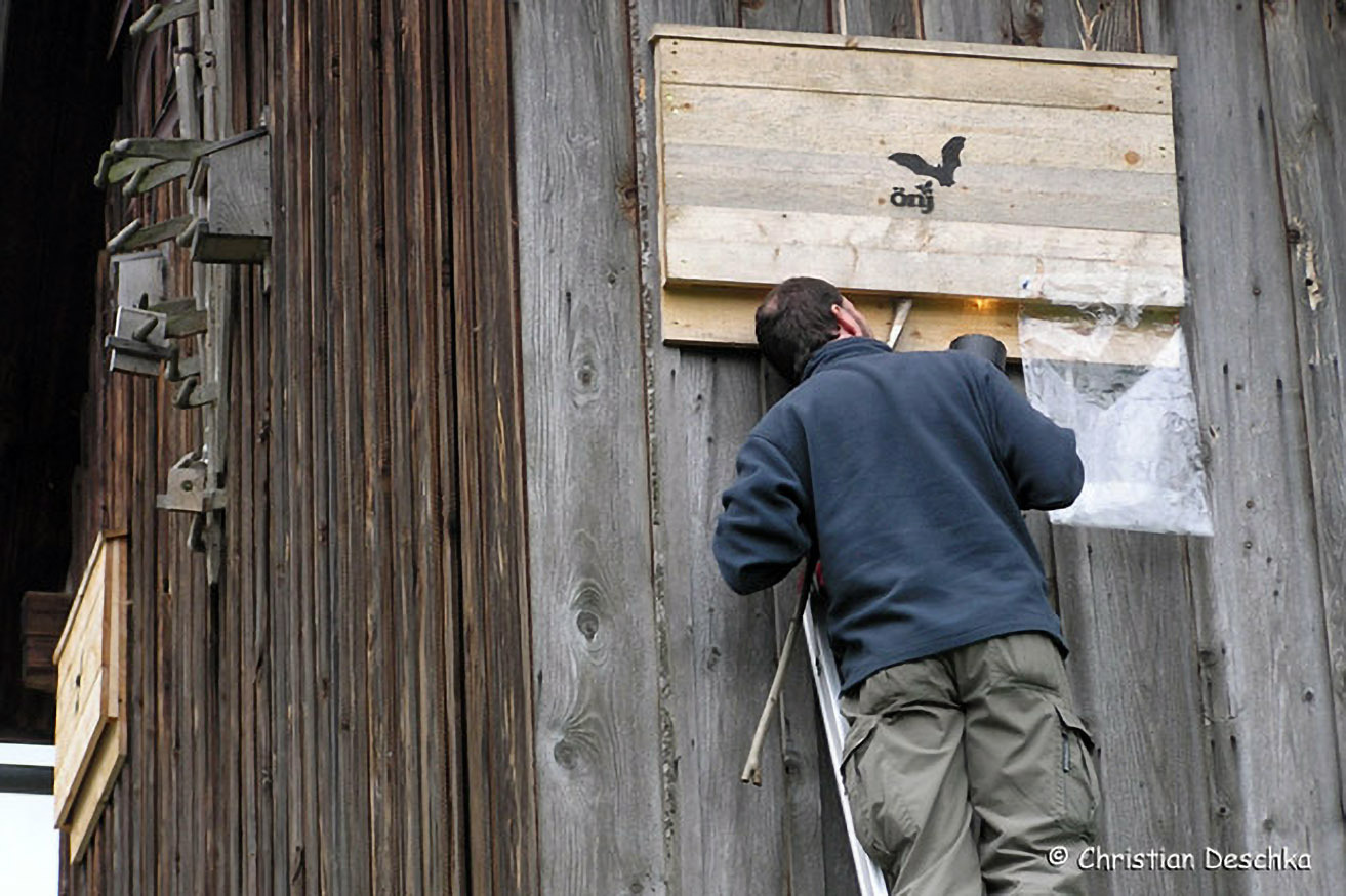 Dreimal im Jahr werden alle Fledermäuse in Zusammenarbeit mit der Koordinationsstelle für Fledermausschutz und -forschung in Österreich (KFFÖ) aus den Kästen geholt.