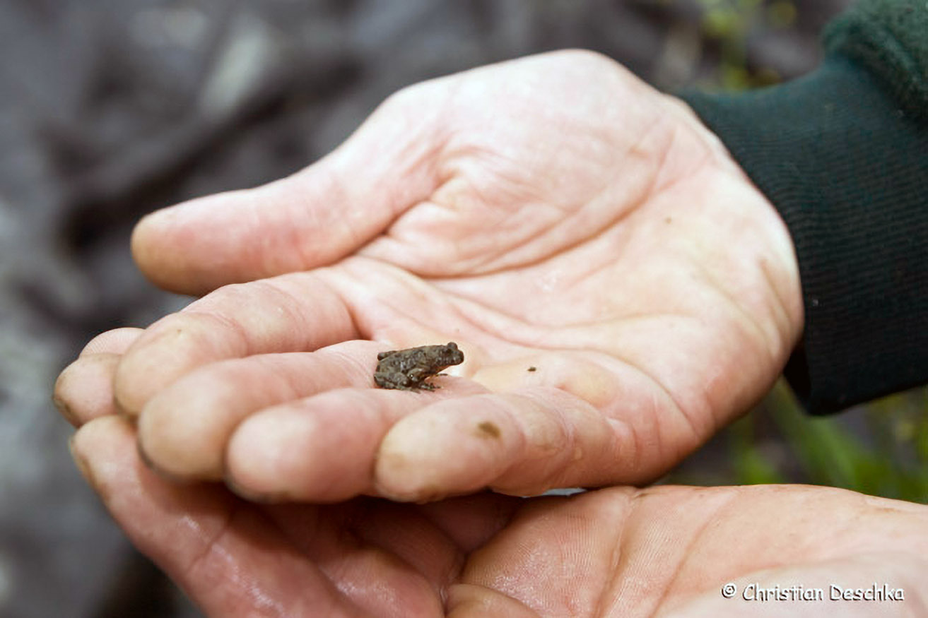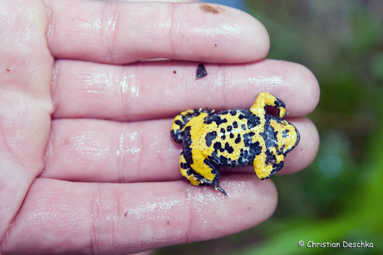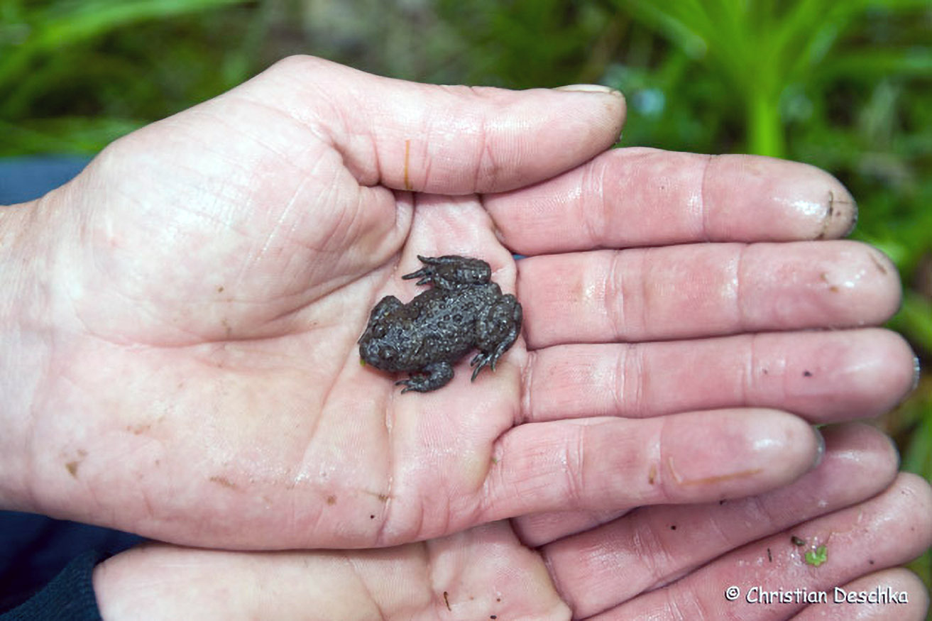 Ausgewachsene Gelbbauchunken sind übrigens etwas kleiner als Rothirsch-Trittsiegel.
