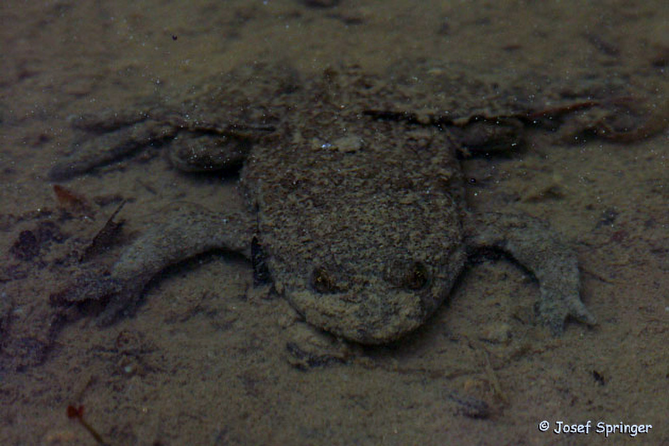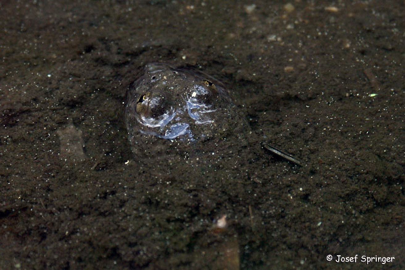 Ab und zu gräbt sich eine Gelbbauchunke sogar - zumindest teilweise - in den Schlamm ein.