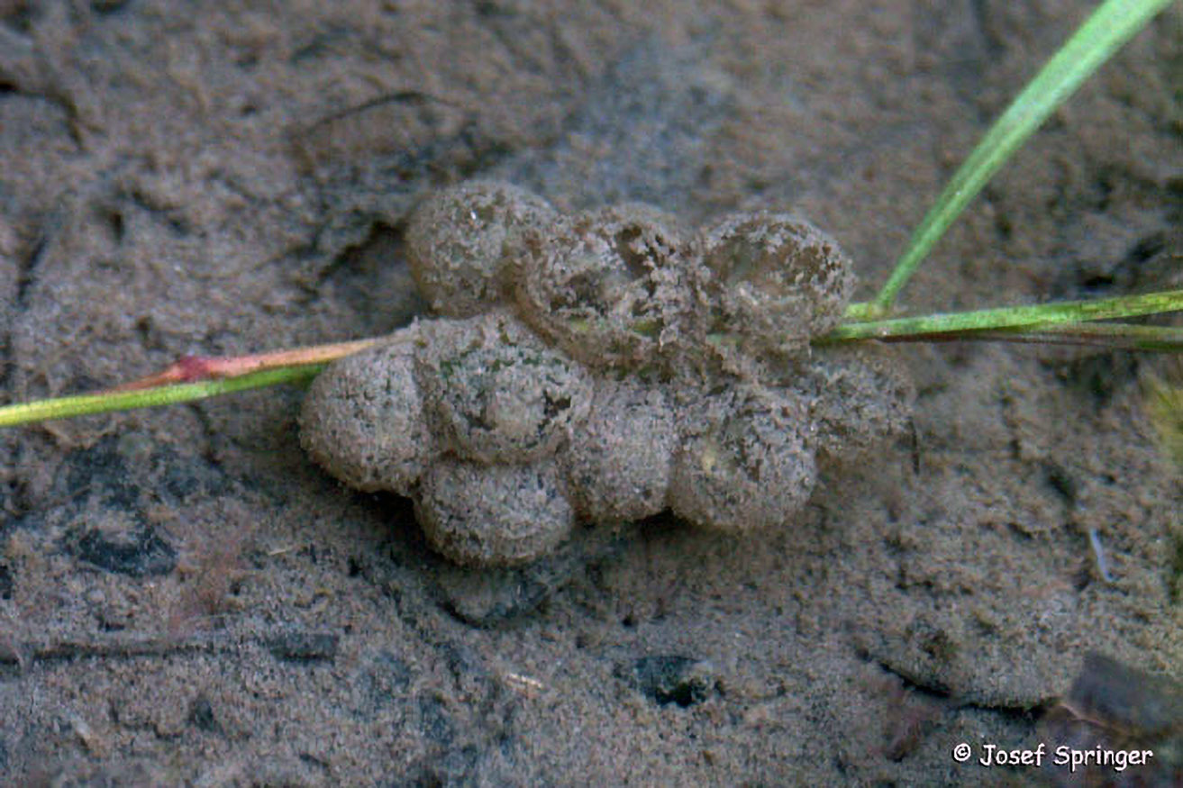 Die Eier werden in Form kleiner Pakete abgesetzt. Sind Pflanzen vorhanden, werden diese Laichballen oft daran befestigt.