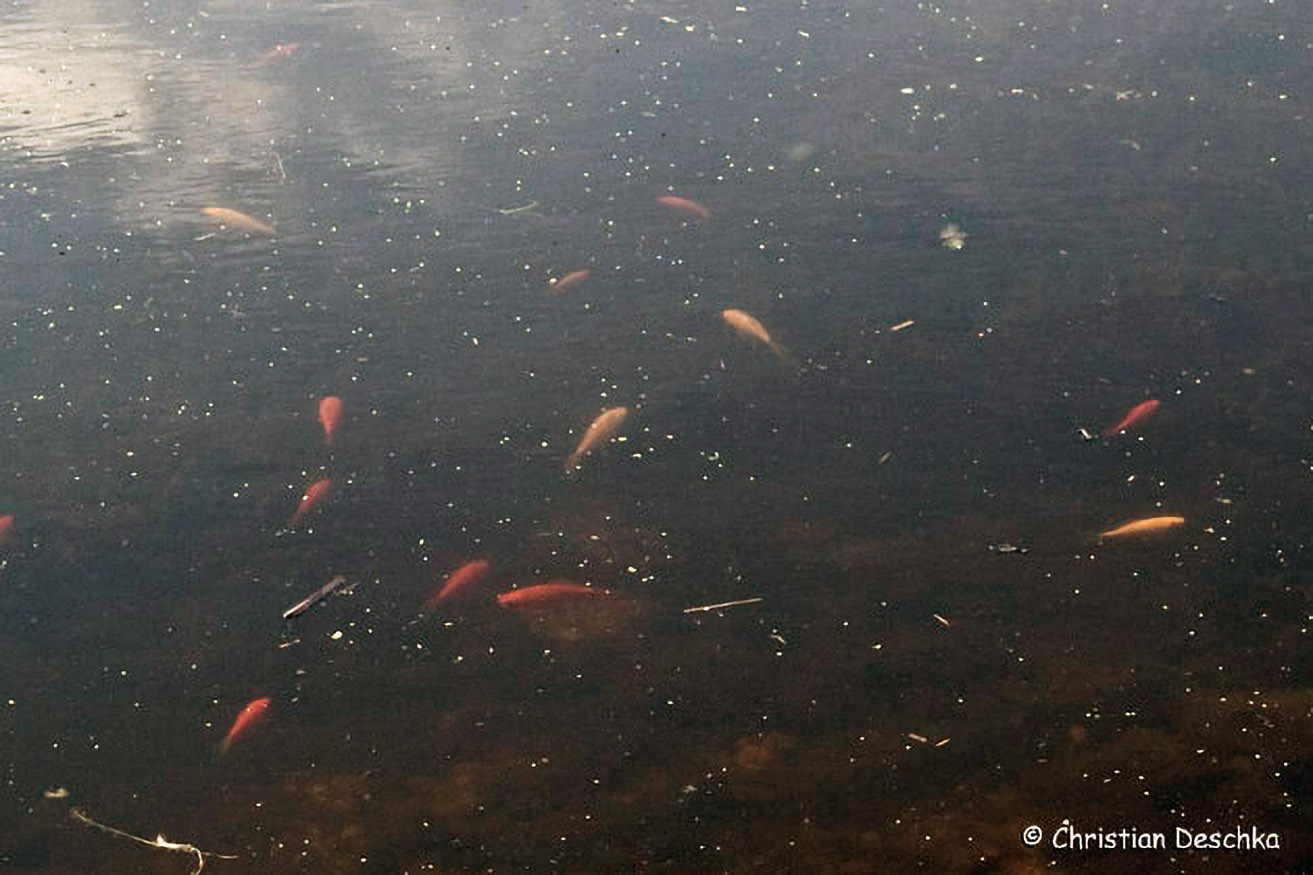 Noch ein paar Worte zur Fortpflanzung dieser Art: Bei der Paarung umklammert das Männchen das Weibchen an der Taille. Die ins Wasser abgegebenen Eier werden sogleich vom Männchen befruchtet.