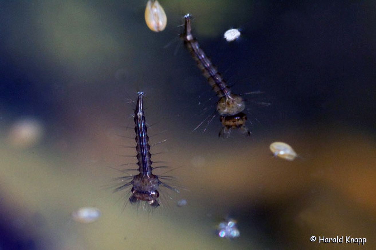 Gelbbauchunken ernähren sich von Insekten. Mückenlarven stehen besonders oft am Speiseplan.