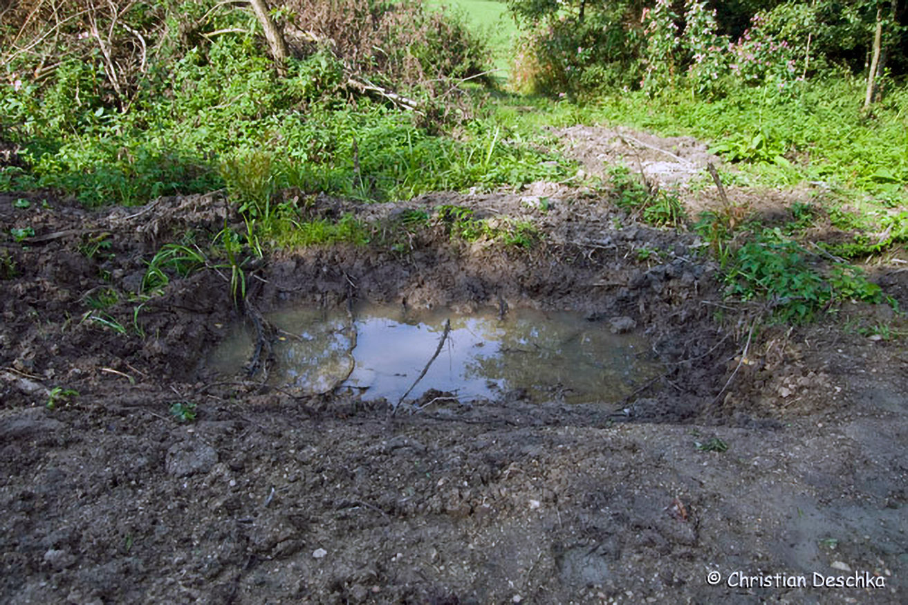 Selbst Wildschwein- und Hirschsuhlen stellen natürliche Lebensräume dieser in der gesamten Aktivitätszeit von April bis September eng an Kleingewässer gebundenen Art dar.