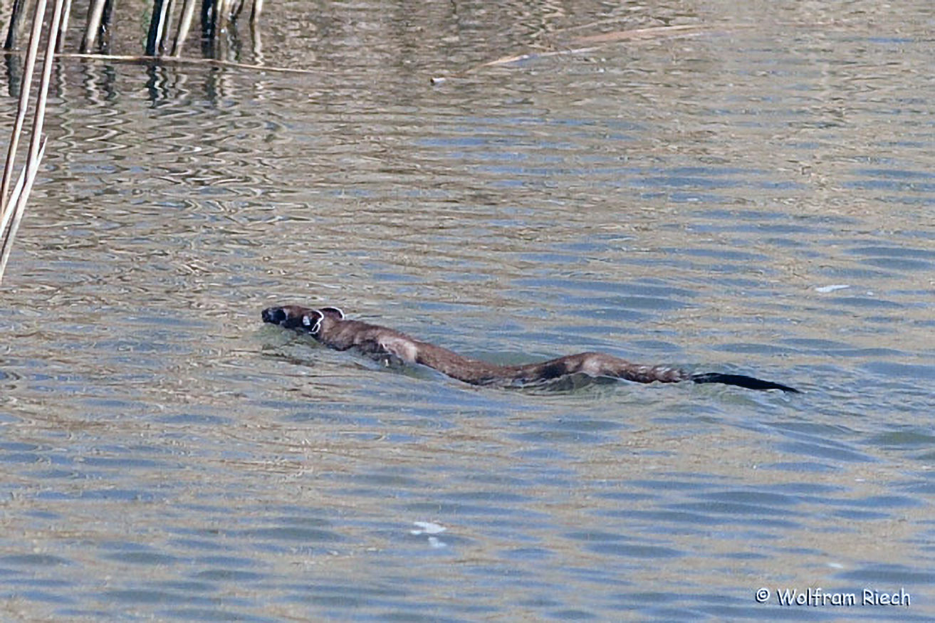 Auch an Bach- und Flussufern kann man diese kleinen Räuber aus der Familie der Marderartigen oft beobachten.