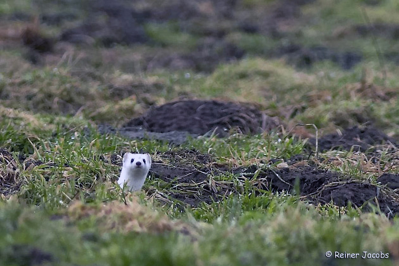 Auf der Jagd läuft das Hermelin gerne entlang von linienartigen Strukturen, beispielsweise entlang von Hecken, Wegen, Ackerrändern, ...