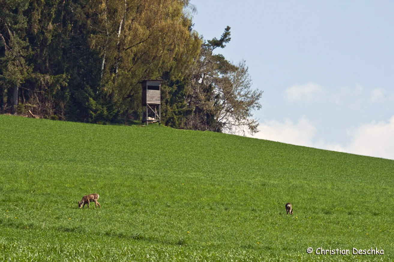 Seit Langem leistet die Jagd auch Beiträge zum Tierschutz und zur Vermeidung wirtschaftlicher Schäden. Beispielsweise werden alljährlich im Mai die Wiesen vor der Mahd abgesucht und damit unzählige Rehkitze vor dem Mähtod bewahrt.