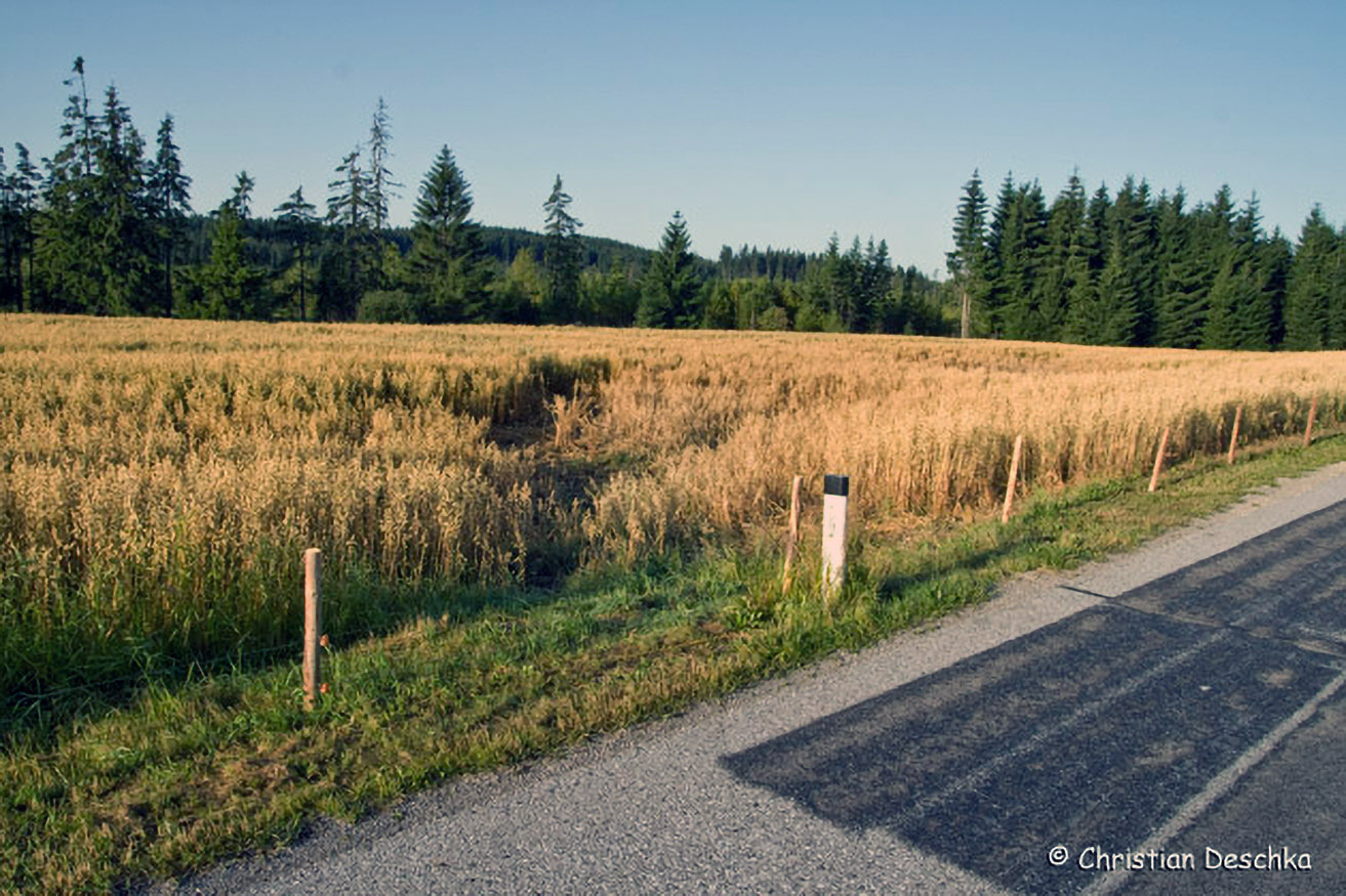 Richtet Wild an landwirtschaftlichen Kulturen Schäden an (in diesem Fall Wildschweine am Hafer), muss der Jäger dem Landwirt dafür eine Entschädigung zahlen. Hier verhinderte der Jäger weitere Schäden durch Bejagung und das Aufstellen eines Elektrozaunes.