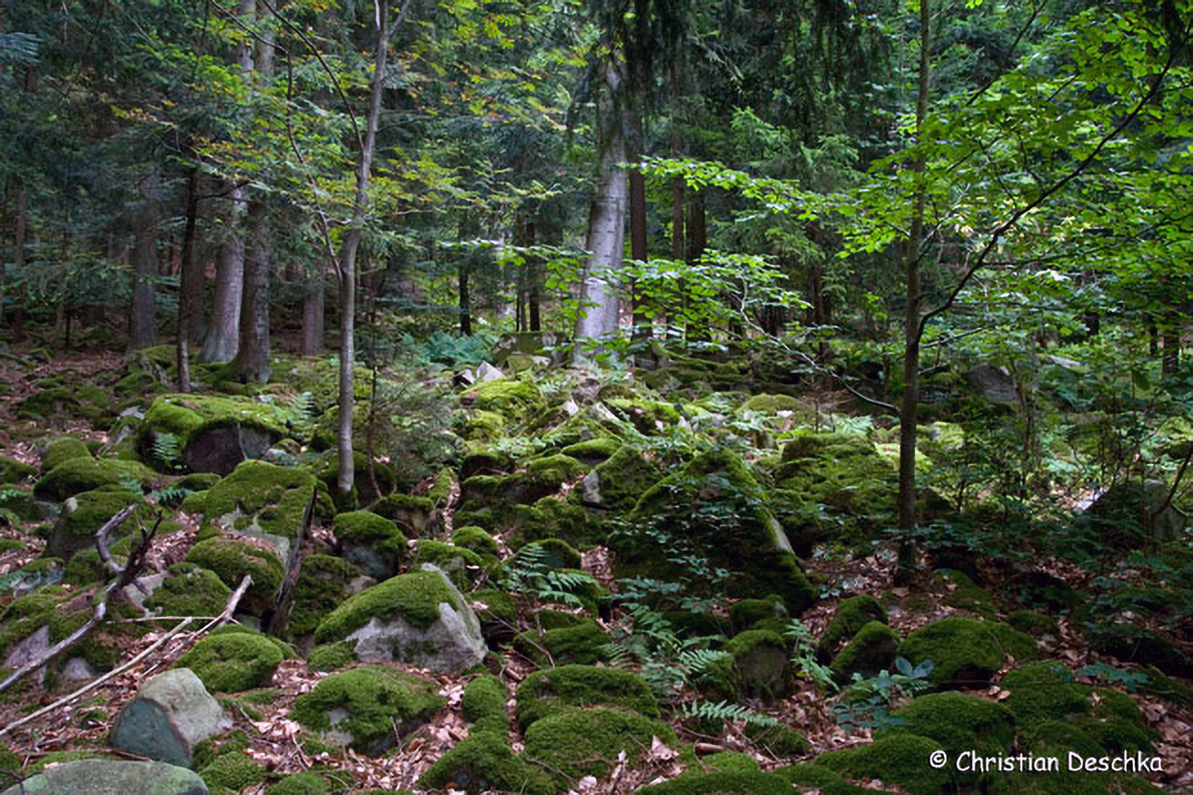 Die verbliebenen Wälder sind heute oft reich an Steinen und Felsen aus Granit und Gneis. Ab und zu findet man sogar solche Blockfelder. Die rundlichen, moosbewachsenen Steine geben unseren Wäldern ein typisches Erscheinungsbild.
