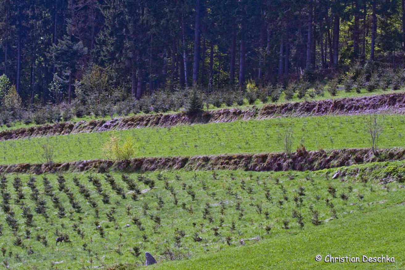 Leider gehen noch immer wertvolle Teile unserer Kulturlandschaft verloren. Z.B. werden vielerorts derart schöne Kulturterrassen in Fichtenäcker verwandelt. Weitere Borkenkäferprobleme und Sturmschäden werden damit vorprogrammiert...