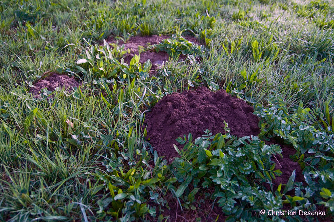 Vom fast ausschließlich unterirdisch in Gängen lebenden Maulwurf findet man zumeist nur charakteristische Spuren - die Maulwurfshügel. Diese stellen das Aushubmaterial der gegrabenen Fanggänge und Baue dar.