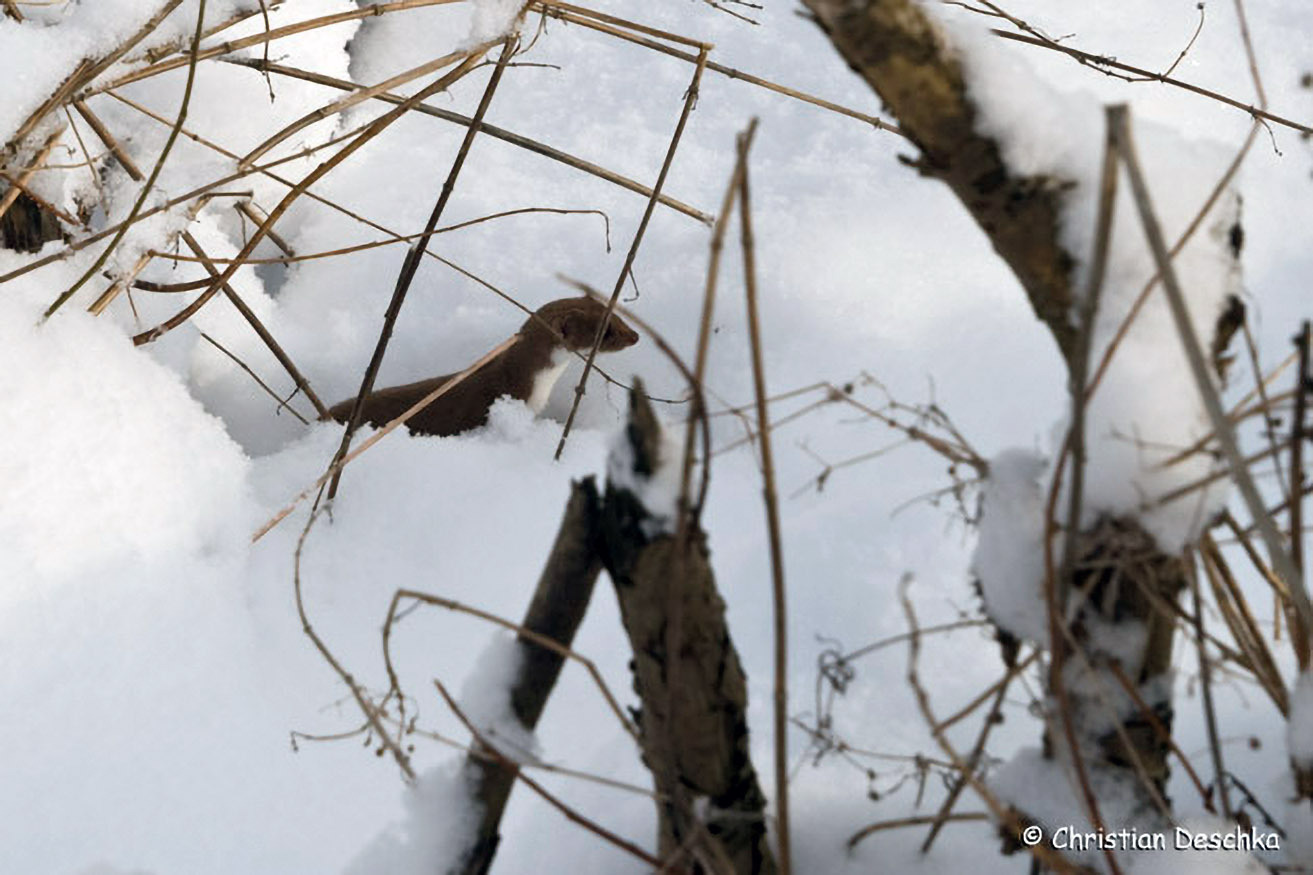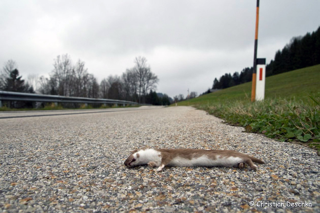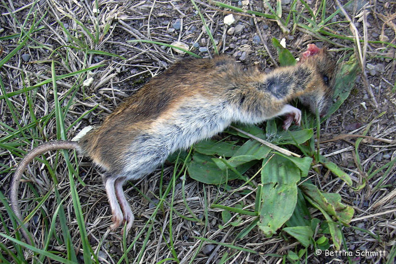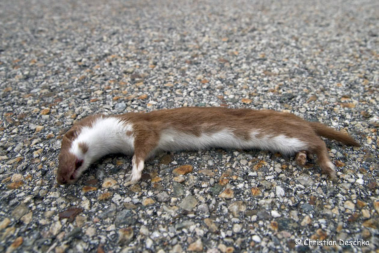 Gelegentlich bezahlen die kleinen Beutegreifer ihre unterirdische Jagd mit dem Leben. Dieses Mauswiesel geriet z.B. in eine Maulwurfsfalle.