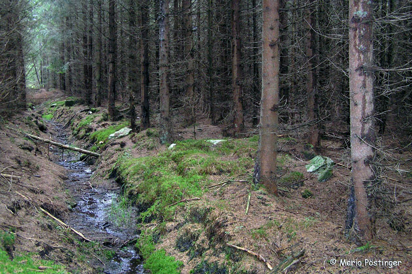 Insbesondere in den 60er und 70er Jahren des letzten Jahrhunderts wurden unzählige Moore im Mühlviertel entwässert und mit Fichten aufgeforstet. Heute weiß man, dass eine lukrative forstliche Nutzung von Mooren nicht möglich ist.
