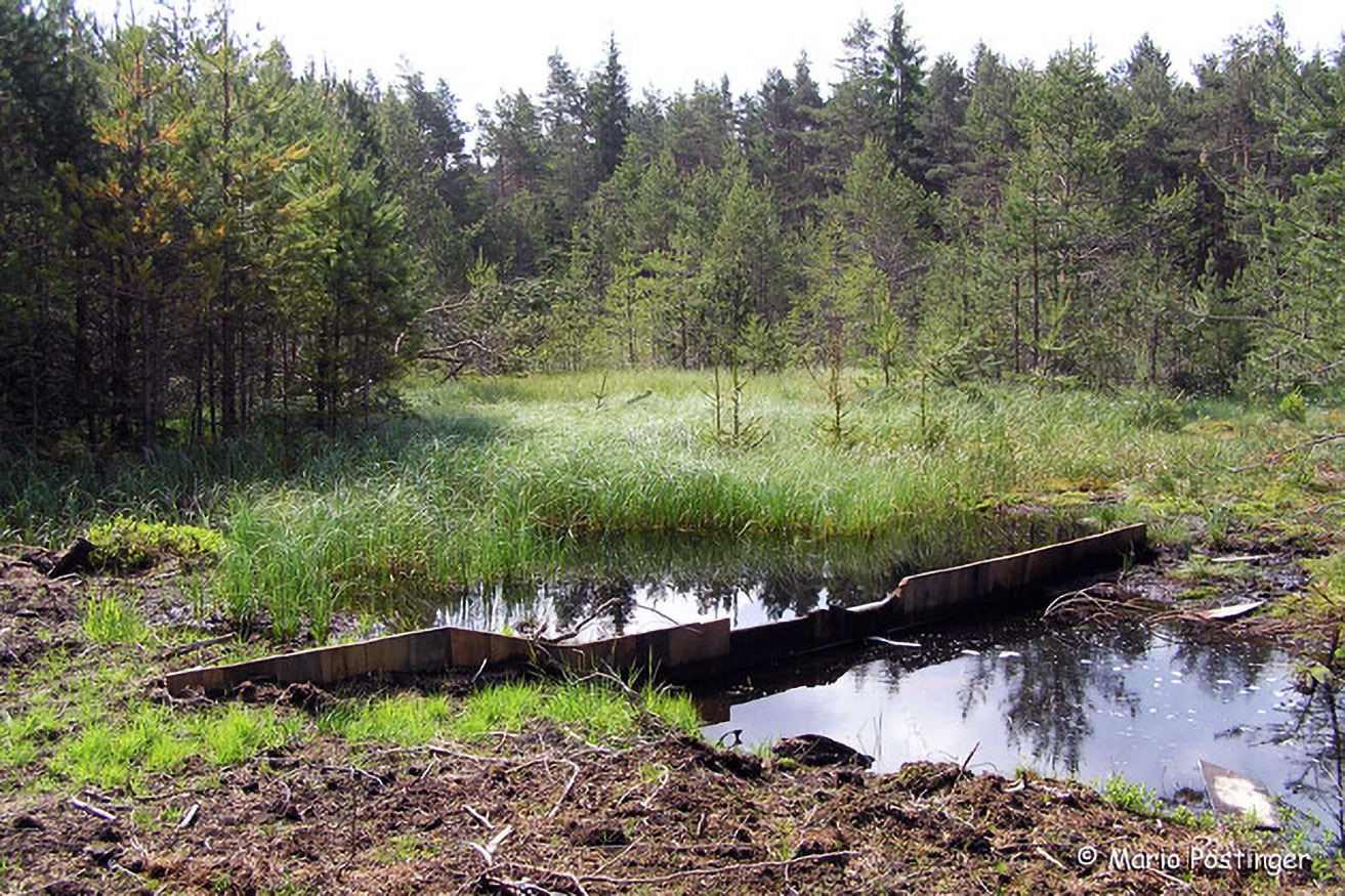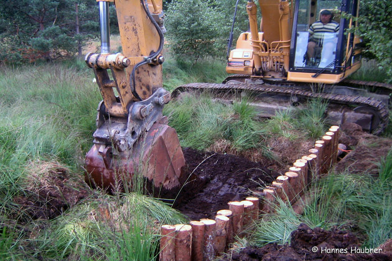 Nur durch das Aufstauen von Gräben kann das Wasser länger im Moor zurückgehalten werden. Erst wenn der gesamte Moorkörper wieder wassergesättigt ist, können erneut torfbildende Prozesse ablaufen und das Moor kann wieder zu wachsen beginnen.