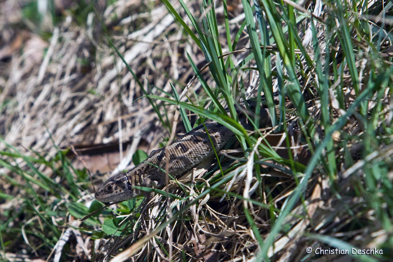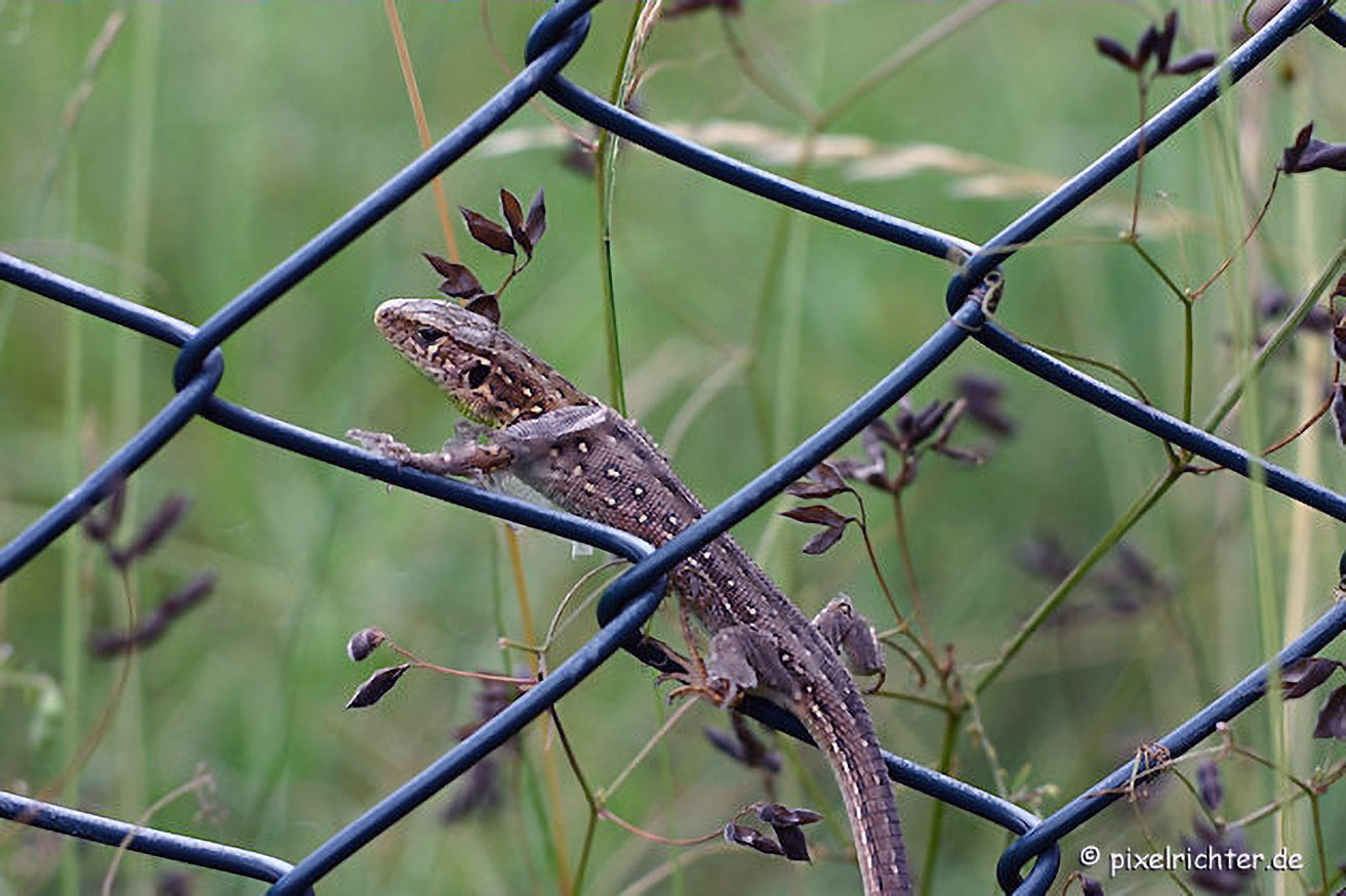 Da die Schuppenhaut nicht mitwächst, müssen sich Eidechsen immer wieder häuten. Wie man hier sieht, sind Zauneidechsen auch gute Kletterer. Vielleicht hat ihnen diese Fähigkeit auch ihren Namen eingebracht.