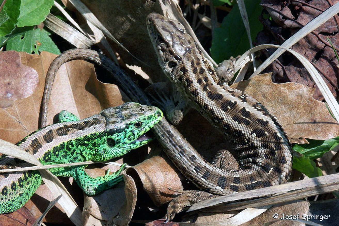Eidechsen können bei Gefahr einmal im Leben ihren Schwanz abwerfen (siehe linkes Tier). Er wächst wieder nach, ist aber dann meist deutlich kürzer und weniger gezeichnet.