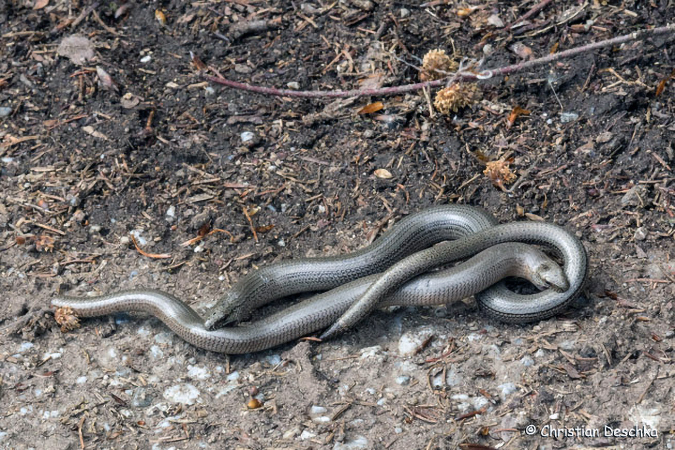 Die Blindschleiche ist keine Schlange, sondern eine Eidechse, deren Beine im Laufe der Stammesgeschichte rückgebildet wurden. Im Röntgenbild würde man noch den Schulter- und Beckengürtel erkennen.