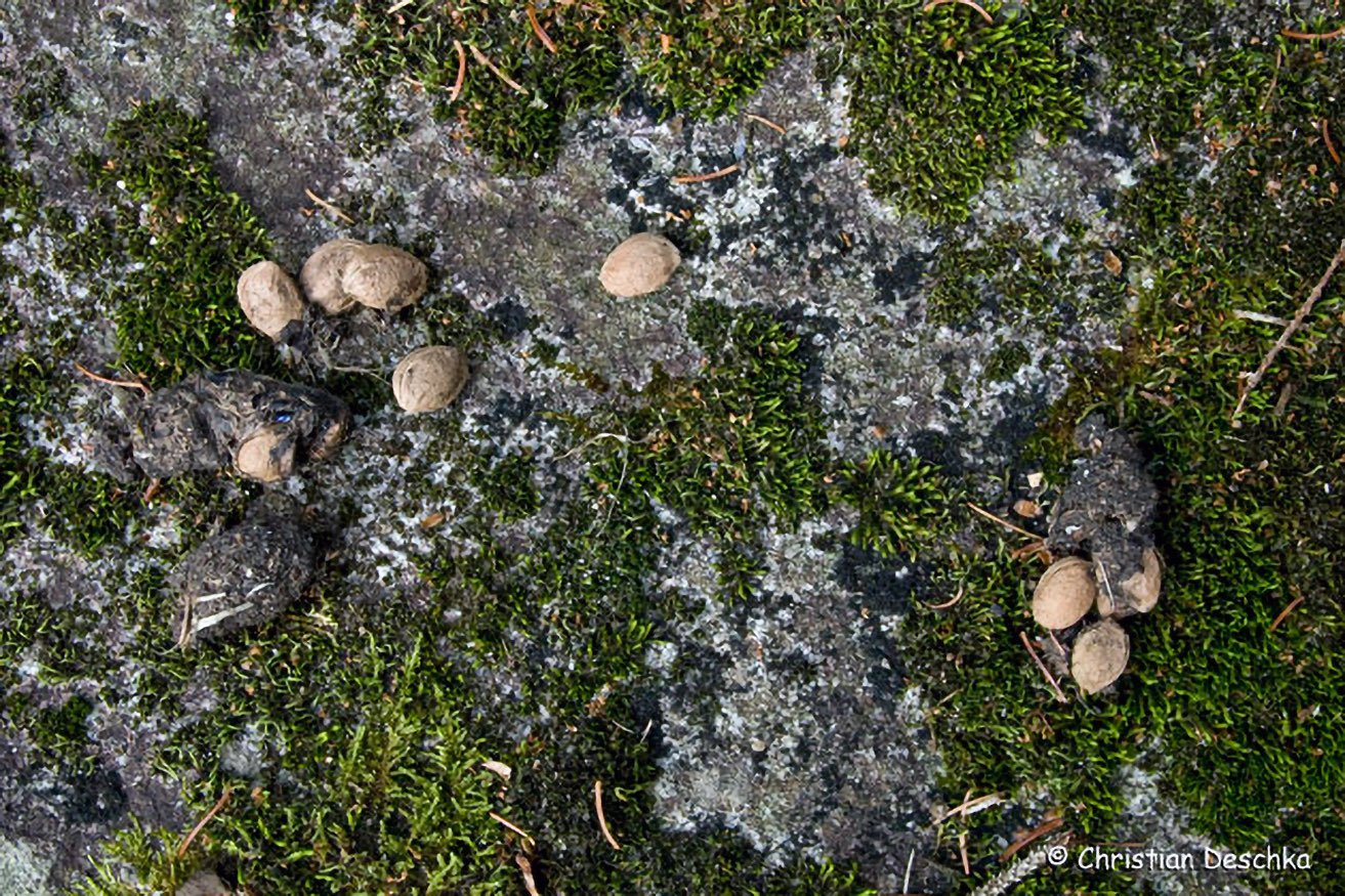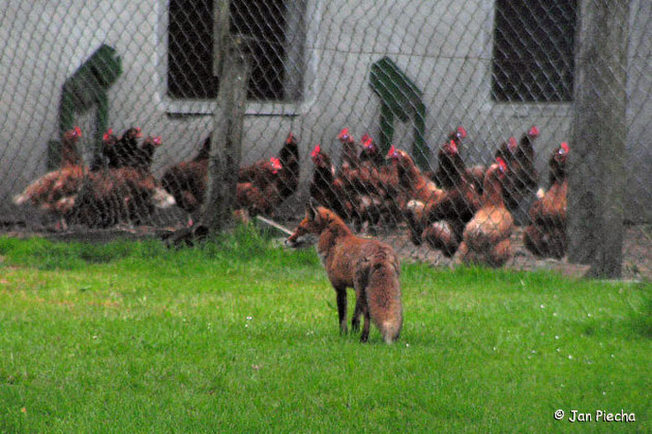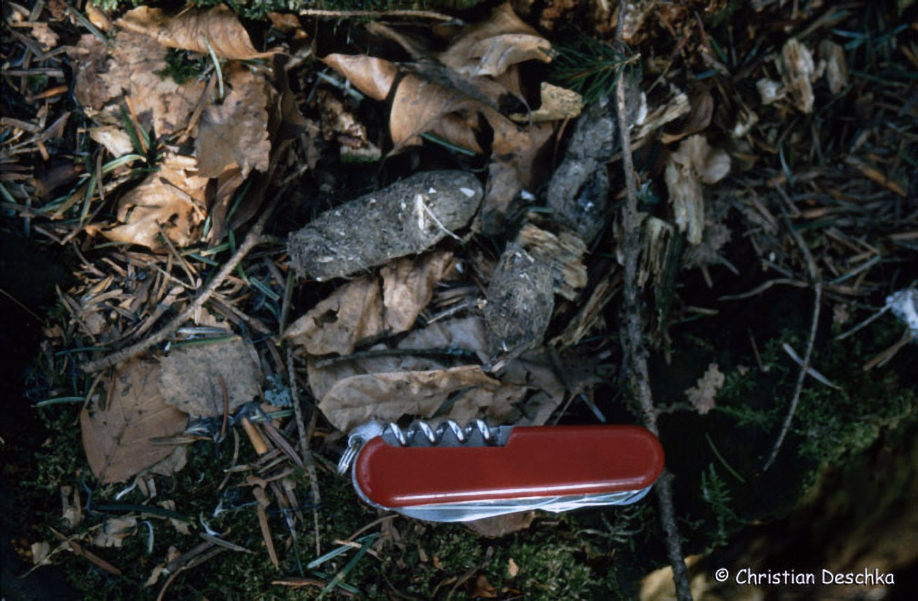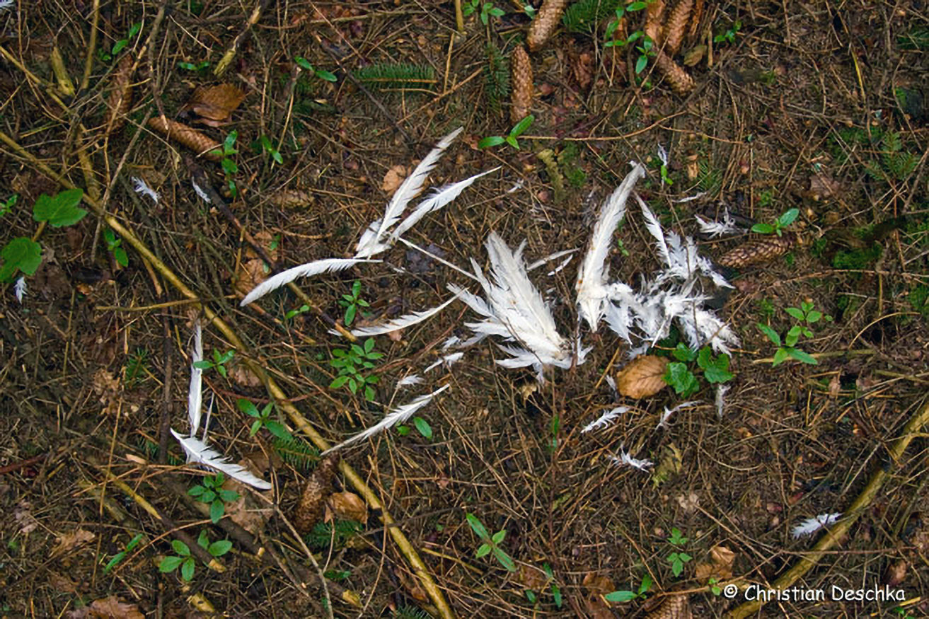 In der Nähe des Baues findet man dann Hühnerfedern mit abgebissenen Federkielen. Manchmal bleiben auch noch Knochenreste über.
