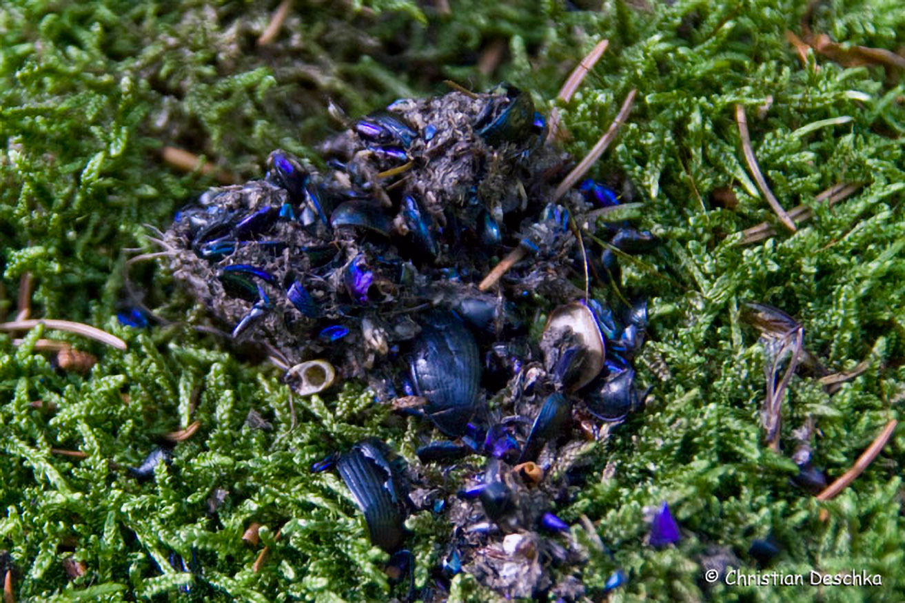 Dort kann man manchmal mit freiem Auge die Ernährung studieren. Hier machten Käfer einen großen Teil der Nahrung aus.