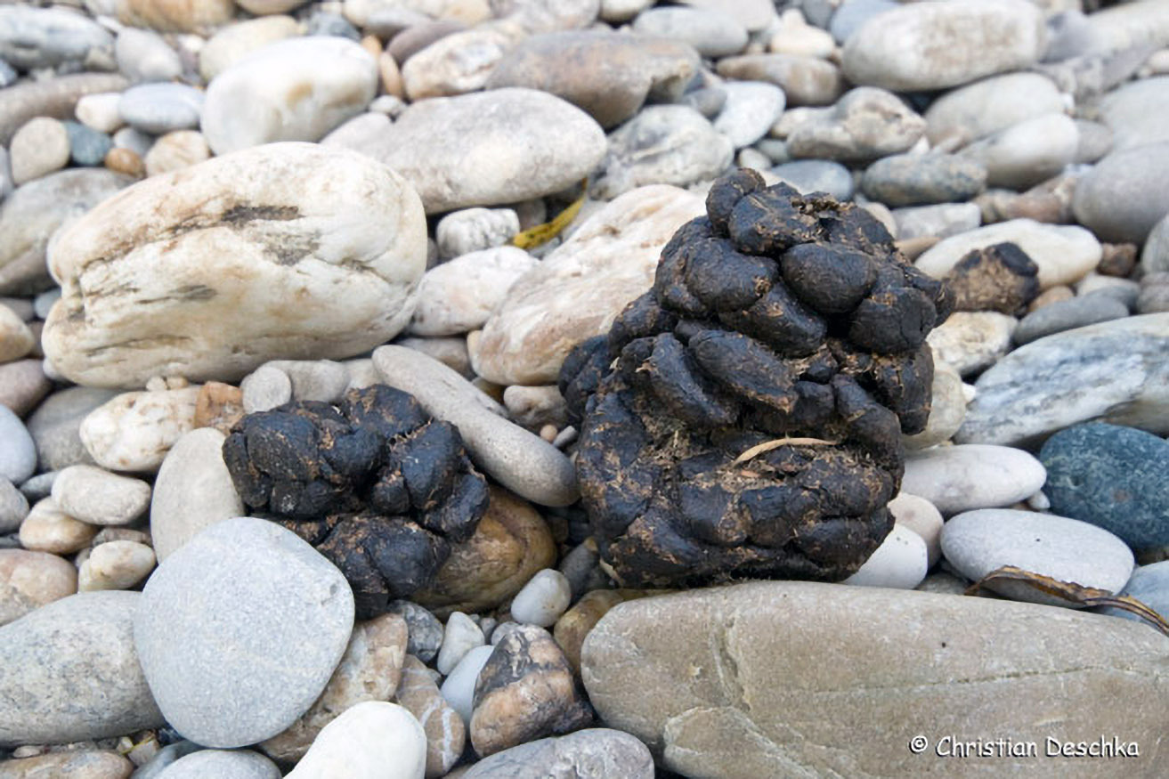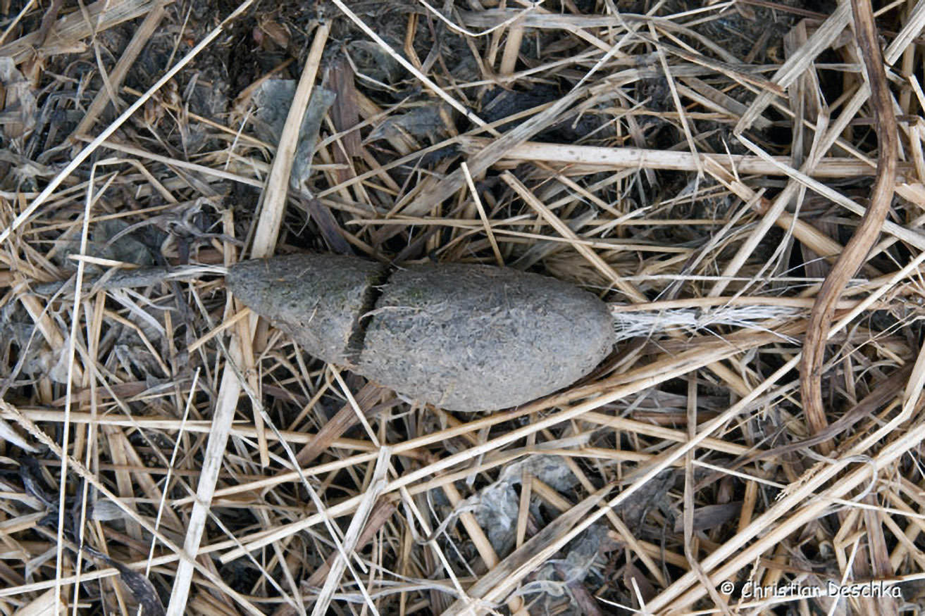 Der Kot besteht zumeist aus einzelnen Pillen, die an Kaffebohnen erinnern.