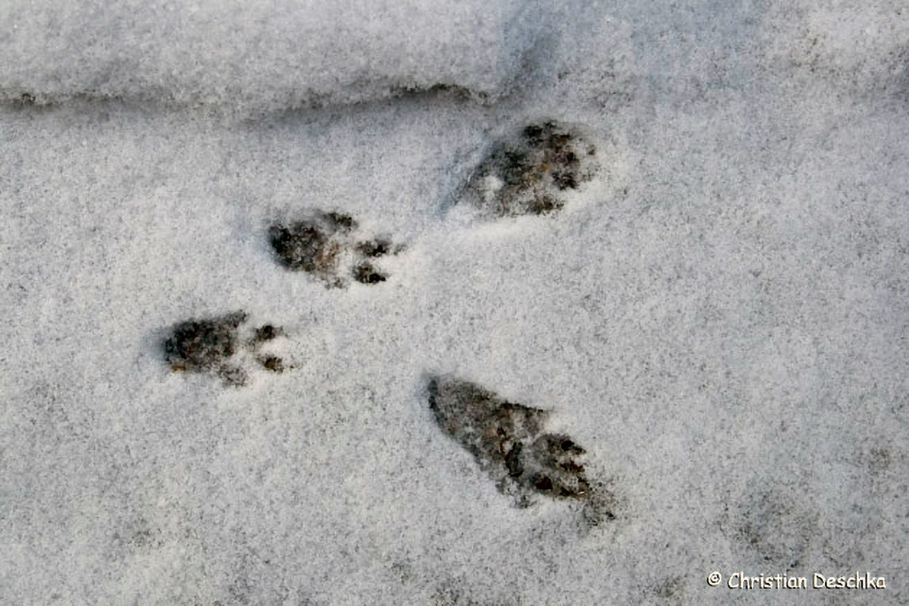 In der Fährte liegen die Trittsiegel abwechseln links und rechts von einer gedachten Mittellinie.