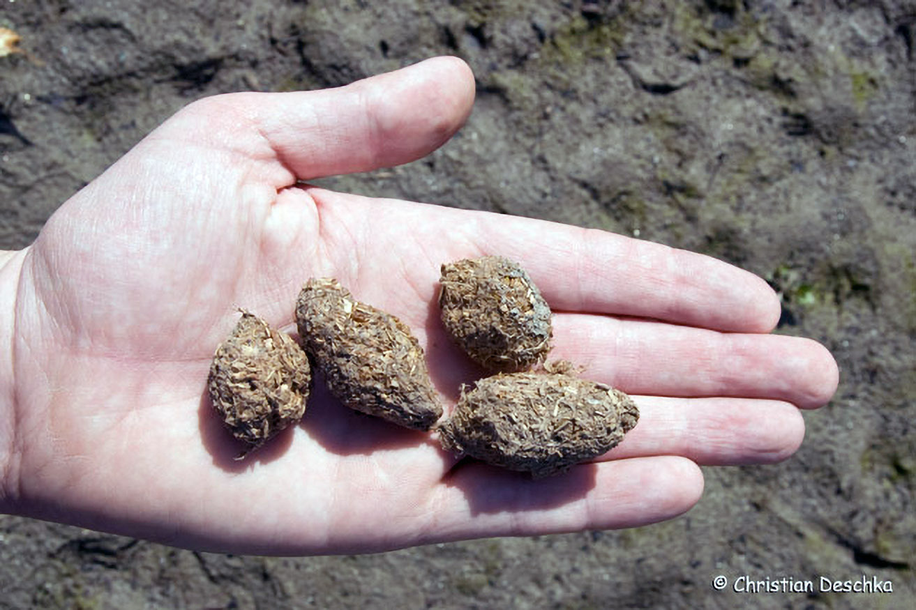 Im Biber-Kot sind die holzigen Pflanzenfassern charakteristisch.