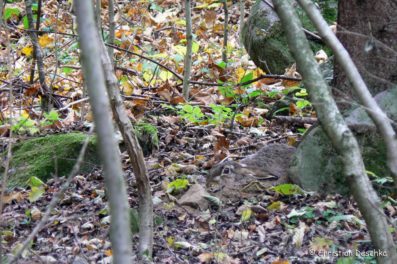Auch Feldhasen liegen in einer eigens ausgescharrten, flachen Mulde, der so genannten Sasse. Oft liegt diese gut geschützt zwischen den Wurzelfüßen eines Baumes.