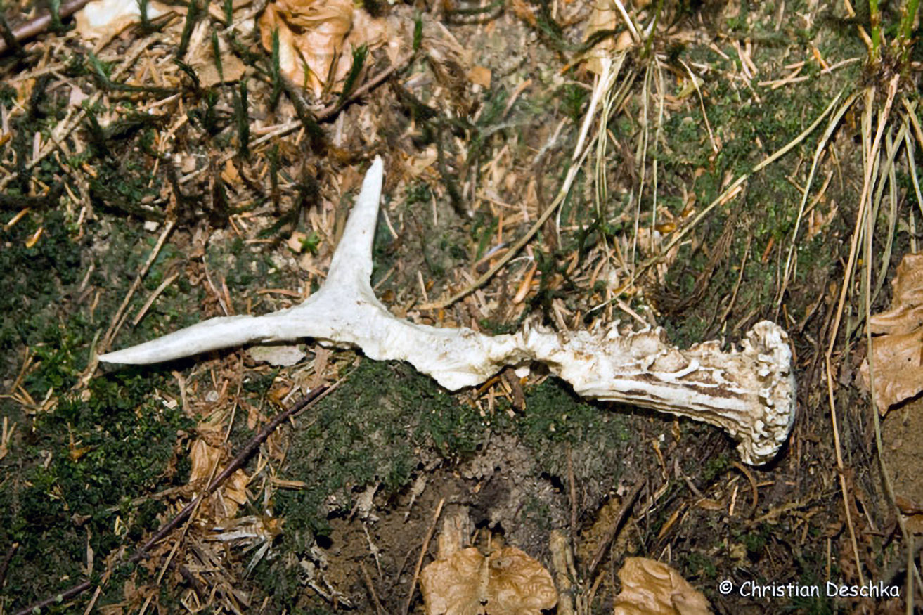 Unserer "Hirschartigen Paarhufer" Reh, Rothirsch und Elch verlieren alljährlich ihr Geweih. Bei Rehböcken fällt es zwischen Oktober und Dezember ab. Findet man es erst Monate später, ist es oft von Mäusen angenagt.