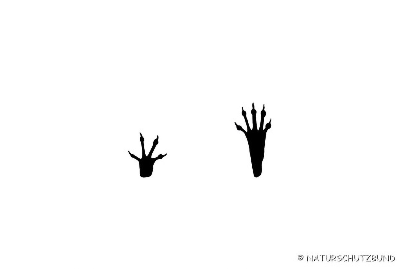 Nutrias sind große Nagetiere aus Südamerika. Gehegeflüchtlinge und absichtlich ausgesetzte (Pelz-)Tiere besiedeln an manchen Stellen unsere Gewässer. An den Abdrücken der Hinterbeine kann man sie gut erkennen: vier mit Schwimmhäuten verbundene Innenzehen und eine freie, oft abgespreizte Außenzehe.