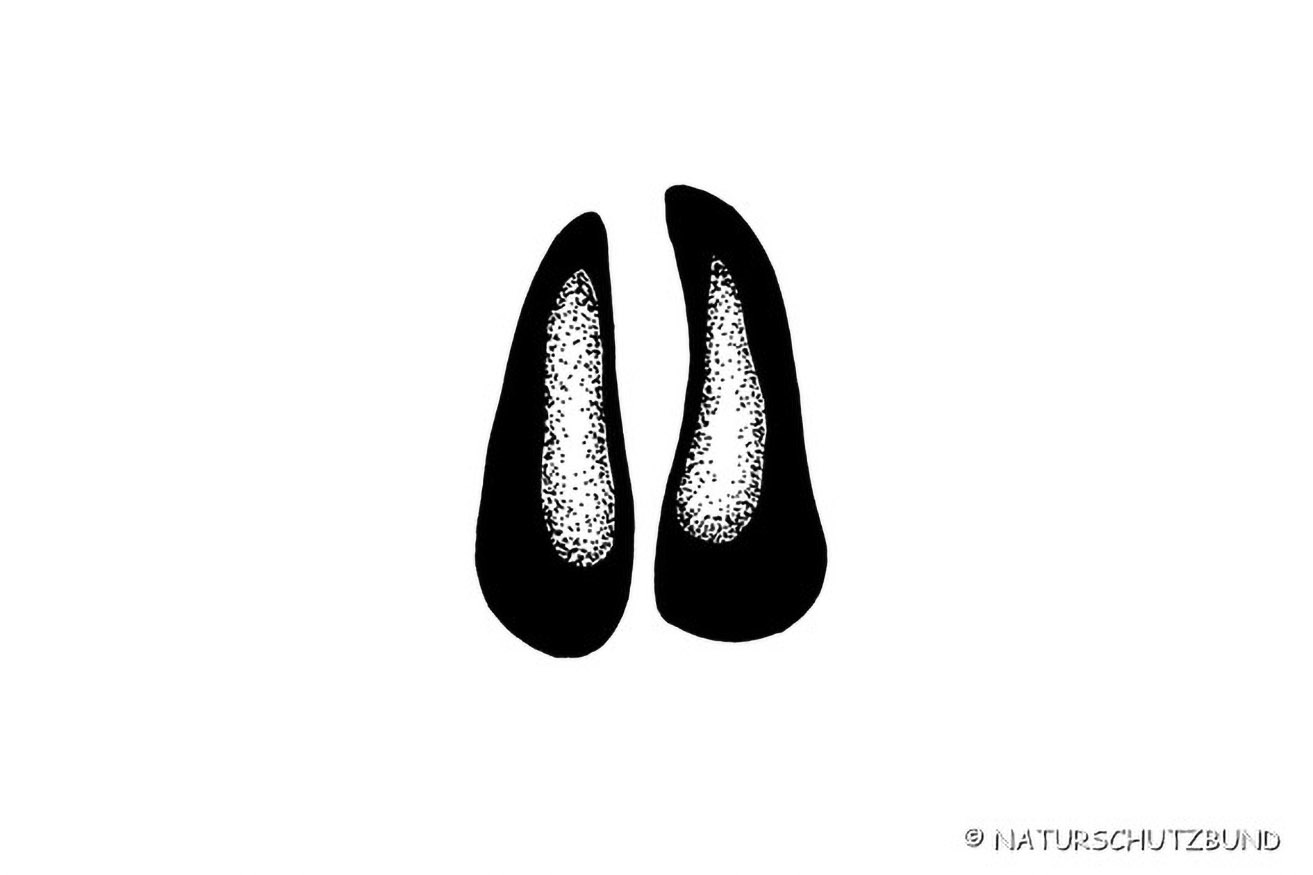 Die Hufabdrücke von Elchen erreichen die Größe eines menschlichen Fußabdrucks. Ihr Umriss ist meist rechteckig. Am ehesten findet man sie im Norden Österreichs.