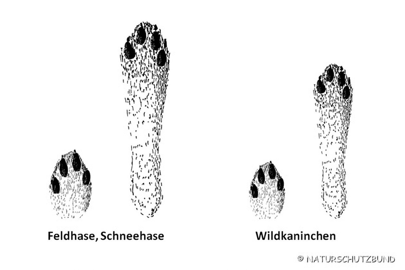 In der Feldhasenspur sind fast immer kleine Abdrücke der Vorderfüße und lange Abdrücke der Hinterfüße vorhanden. Haarbüschel täuschen jeweils vier Ballen vor. Zusätzlich sieht man oft Abdrücke der spitzen Krallen.