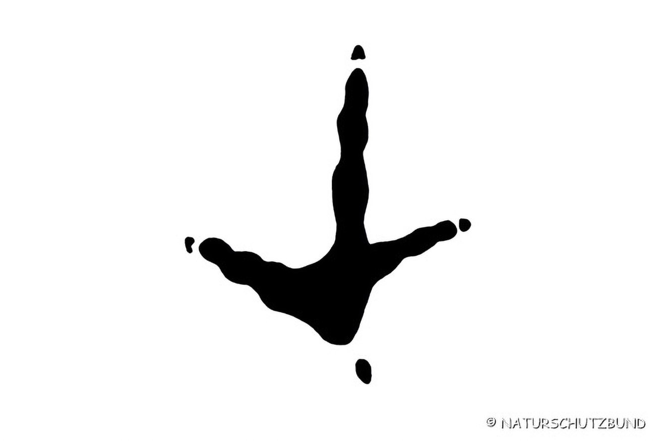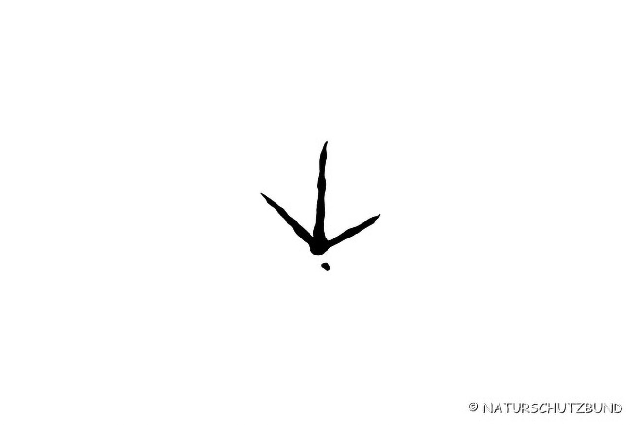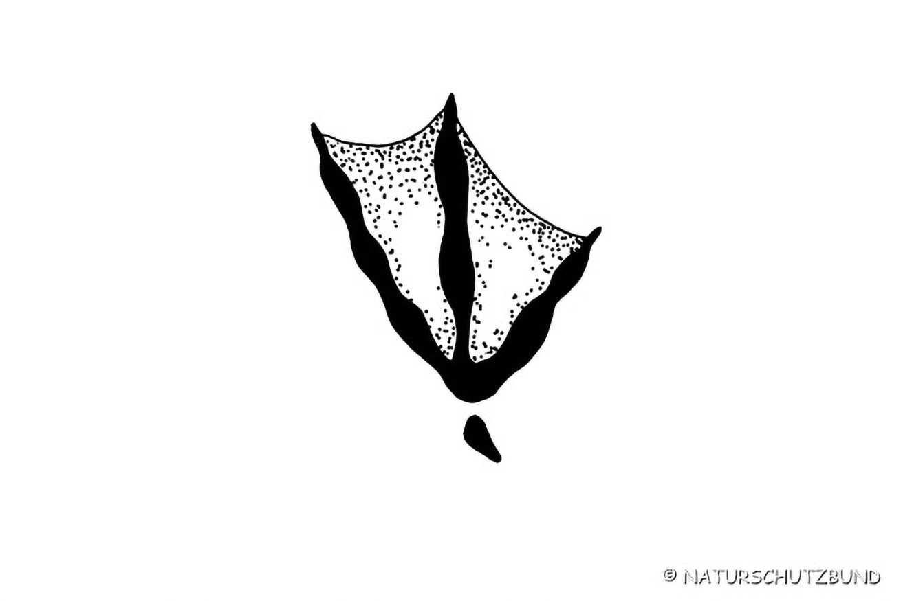 Der Gänsefuß(abdruck) ist asymmetrisch, da die Innenzehe deutlich kürzer als die Außenzehe ist. Die Hinterzehe ist nur als "Komma" abgedruckt.