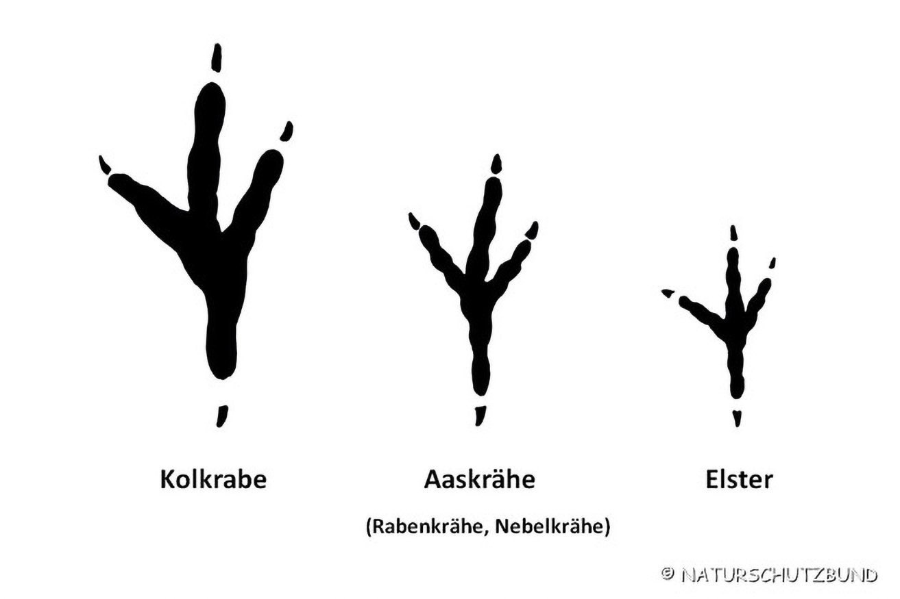 Auch die Abdrücke von Kolkrabe, Aaskrähe und Elster sind recht ähnlich und unterscheiden sich vor allem in der Größe: Das Kolkraben-Trittsiegel ist etwa 11 cm lang, jenes der Elster 6 cm.